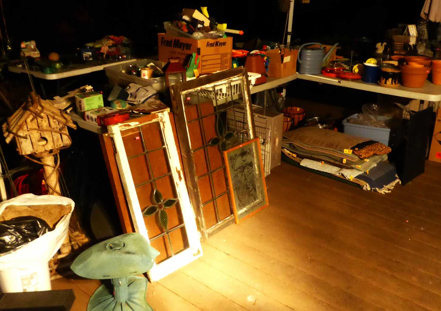 Thursday, Noon to 4:00 p.m., Friday, Saturday & Sunday, 11:00 a.m. to 4:00 p.m., 2575 Windsor Circle E, Eugene (W. 18th to Britney to Windsor Circle), antique furniture, collectibles, advertising bottles, jars & tins, primitives, rooms of Holiday decor, vintage Christmas, antique, vintage & new toys, children's items & books, bookcases, lots of electronics, jewelry, vintage linens & quilts, Heywood Wakefield wicker desk, mid-century china cabinet, C. Jere metal wall sculpture, antique hall trees, Dept. 56 Snow Village, antique Singer sewing machines, antique trunks, Campfire Girl collectibles, oak dining set, Franciscan Desert Rose dinnerware, Queen size Murphy bed, antique rocking chairs, daybed w/trundle, floor lamps, men's clothing, full kitchen, upright freezer, LG front-loading washer & dryer, garage fridge, vintage Schwinn bicycle, pet supplies, hand & garden tools, garage shelving, 7 boxes of architectural stone veneer, patio set, yard decor & more!