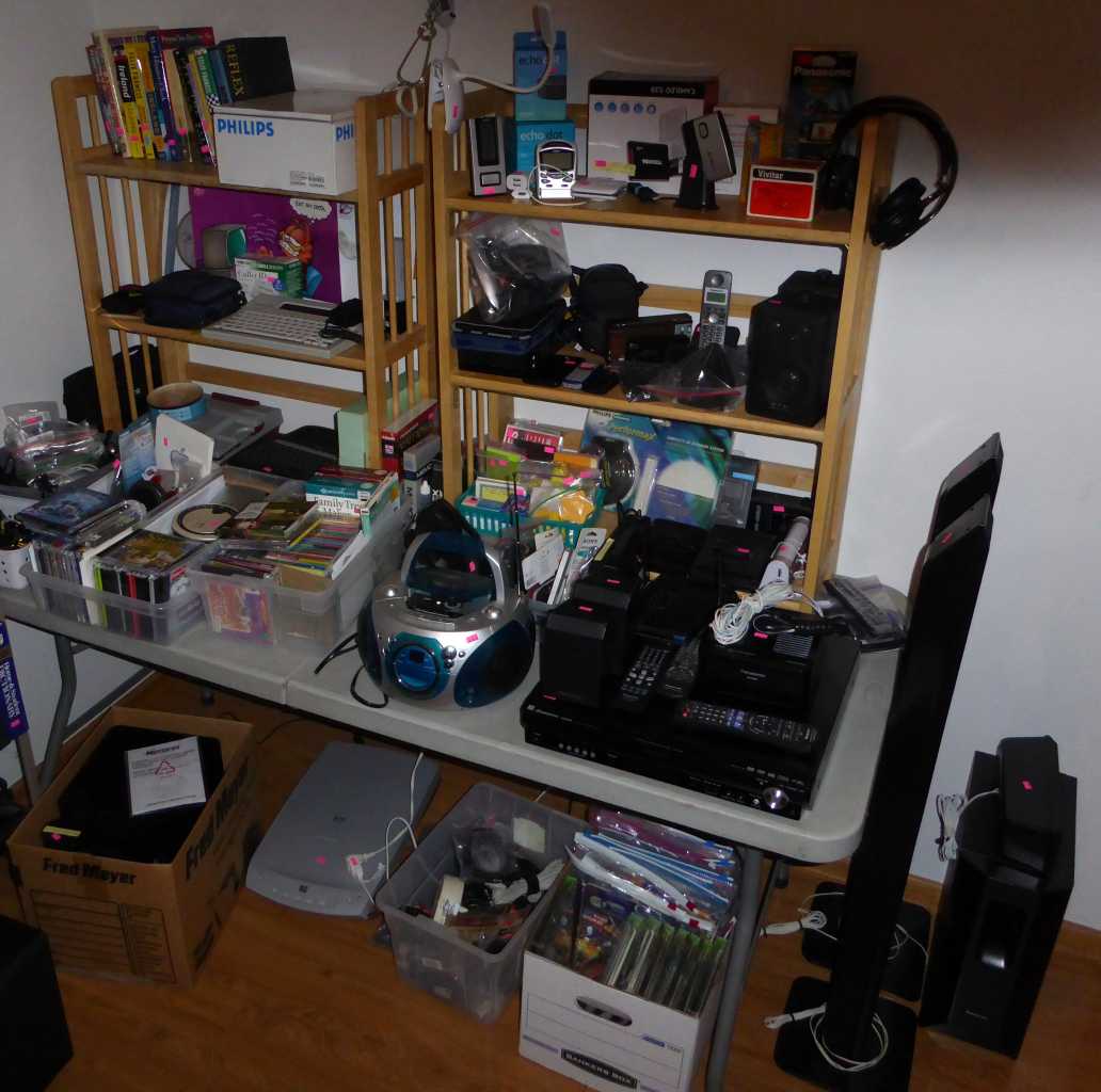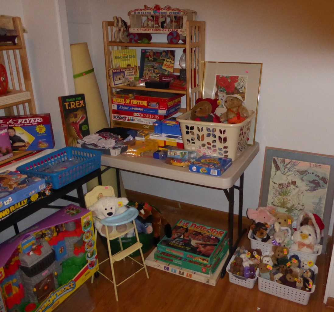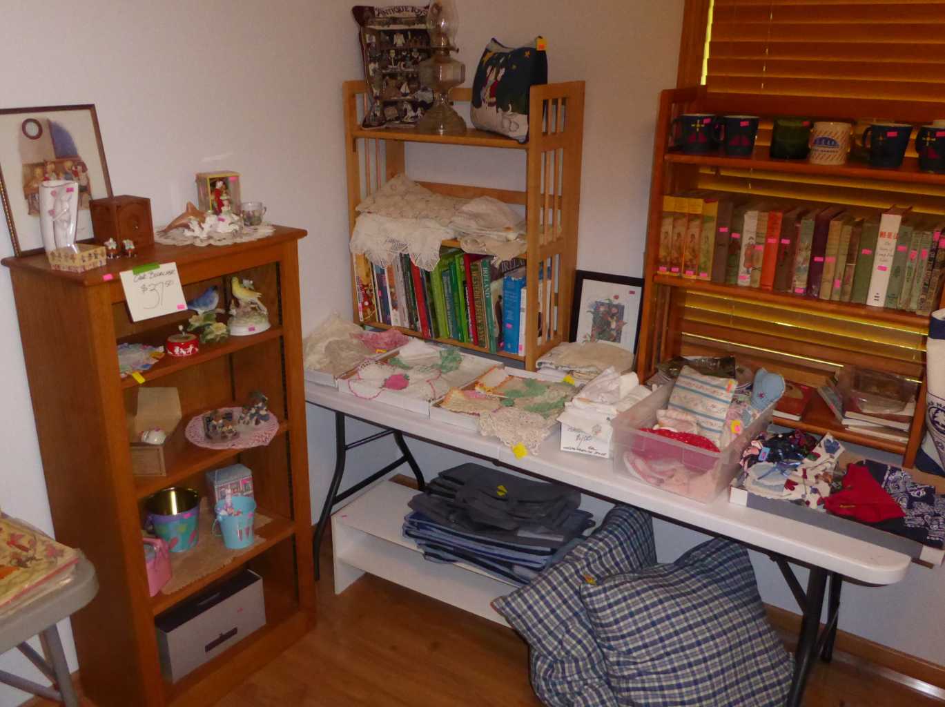 Still a lot of great stuff & everything is 75% off the marked price! 2575 Windsor Circle E., Eugene, 9:00 a.m. to 3:30 p.m., Halloween & Christmas decor, new, antique & vintage toys, dolls, games & children's books, ephemera, jewelry, Swarovski crystal, portable Victrola, household linens & blankets, variety of electronics, office supplies, oak desk, lateral file cabinet, oak bookcases, lamps, framed prints, trunks, cedar chest, primitives, vintage kitchen items, cookware, Corelle dinnerware, Debbie Mumm Snowman dinnerware & accessories, Formula stepper, Weber tabletop grill, birdhouses, garage items & more!