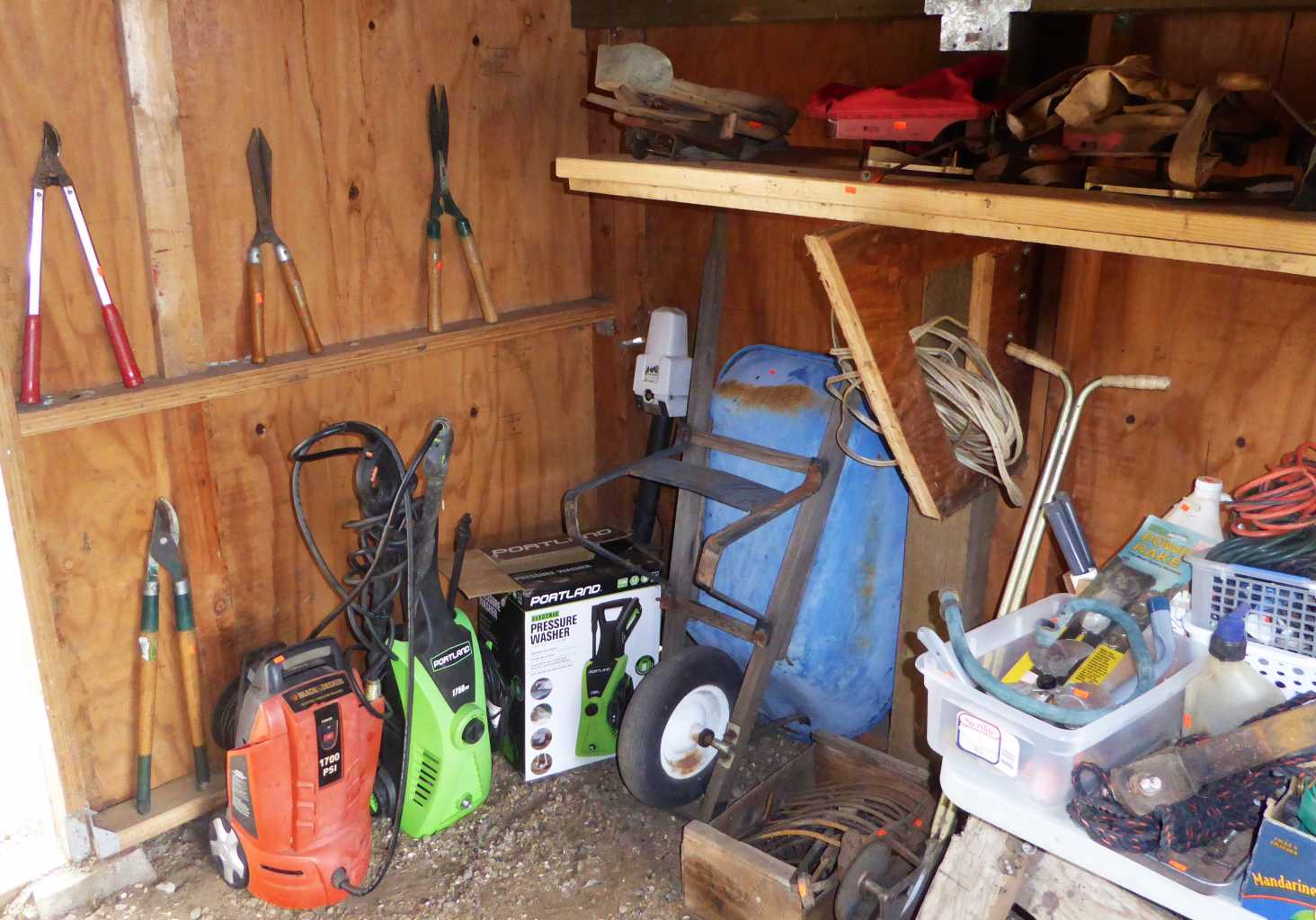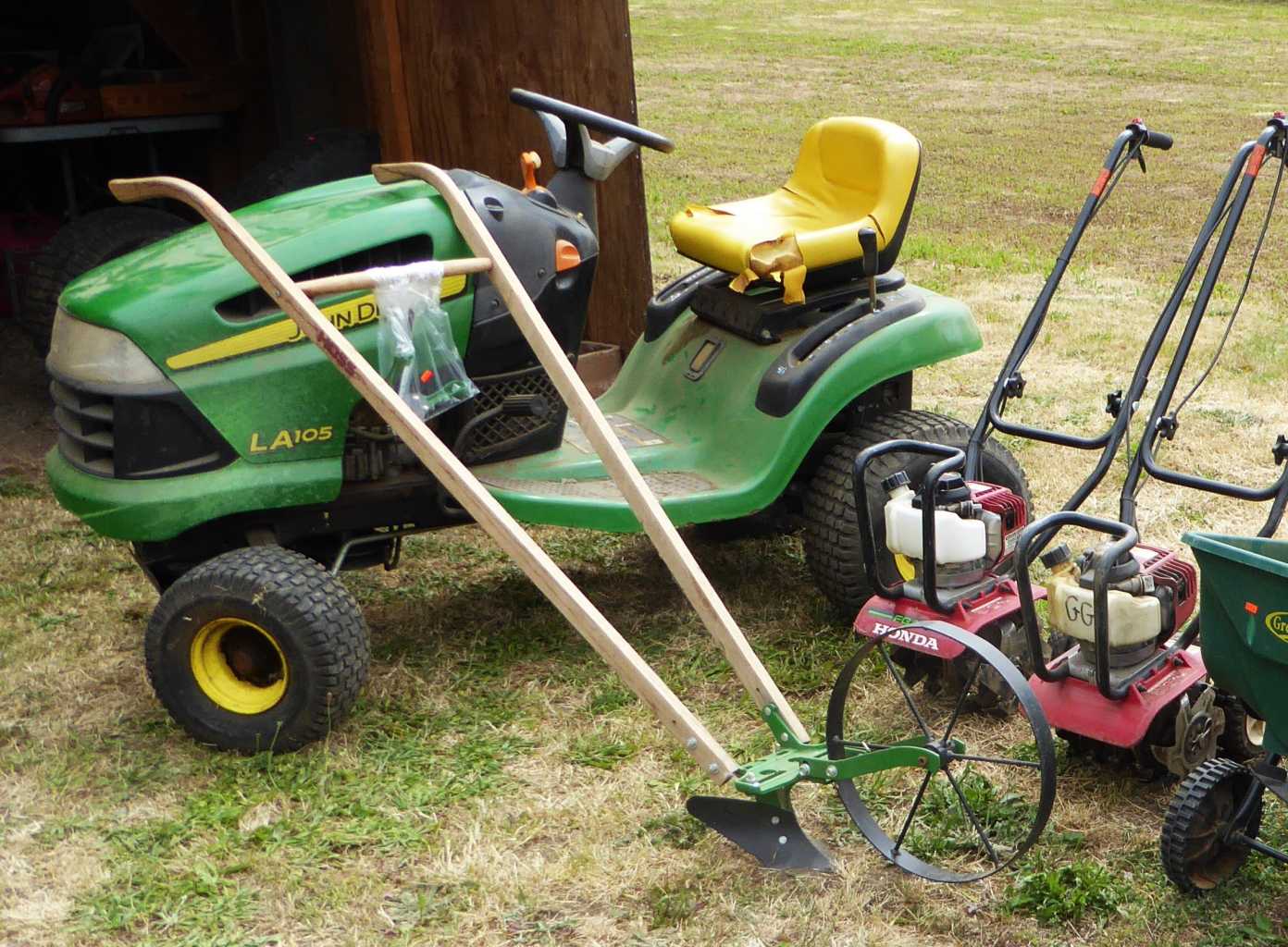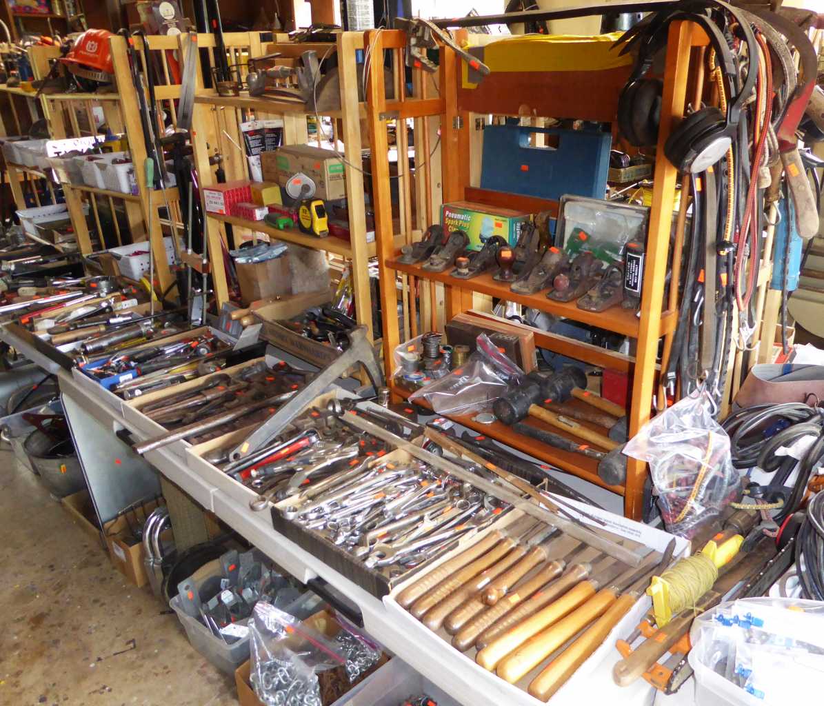 Country sale in the City, Thurs., Noon to 4:00 p.m., Friday, Saturday & Sunday, 11:00 a.m. to 4:00 p.m., 1708 River Rd., Eugene (on the corner of Hamilton & River Rd.), woodworking shop jam packed with quality tools including Sebastian industrial lathe, Rockwell Model 12 contractor's table saw, woodshop dust collector, Ryobi oscillating sander and 100's of other hand & power tools, lots of lumber, antique block planes, ladders, vintage auto & bicycle parts, fishing & camping gear, Guardian Ware collection, Griswold & other cast iron, Erector set collection, 20 & 30 gallon antique crocks, antique canning jars, old advertising tins & bottles, Edison wax cylinder phonograph w/cylinders, antique atlas's & books, cobalt blue depression glass, Cape Cod (Ruby) glass, Gone with the Wind collectibles, collector cars, Men's work clothes & vintage Western wear, Christmas decor, Mid-Century dining set, tea cart, oak dining set, curio cabinets, china cabinet, full-size adjustable bed, 1940's blonde bedroom set (Dixie brand), La-z-Boy recliner, like-new lift chair, sofa, occasional tables, full kitchen, Maytag washer & dryer, 2 large upright freezers, John Deere lawn tractor (needs battery), DR Roto-Hog power tiller, power washers, garden tools, planters, gas grills & smoker, picnic table, yard decor & more!