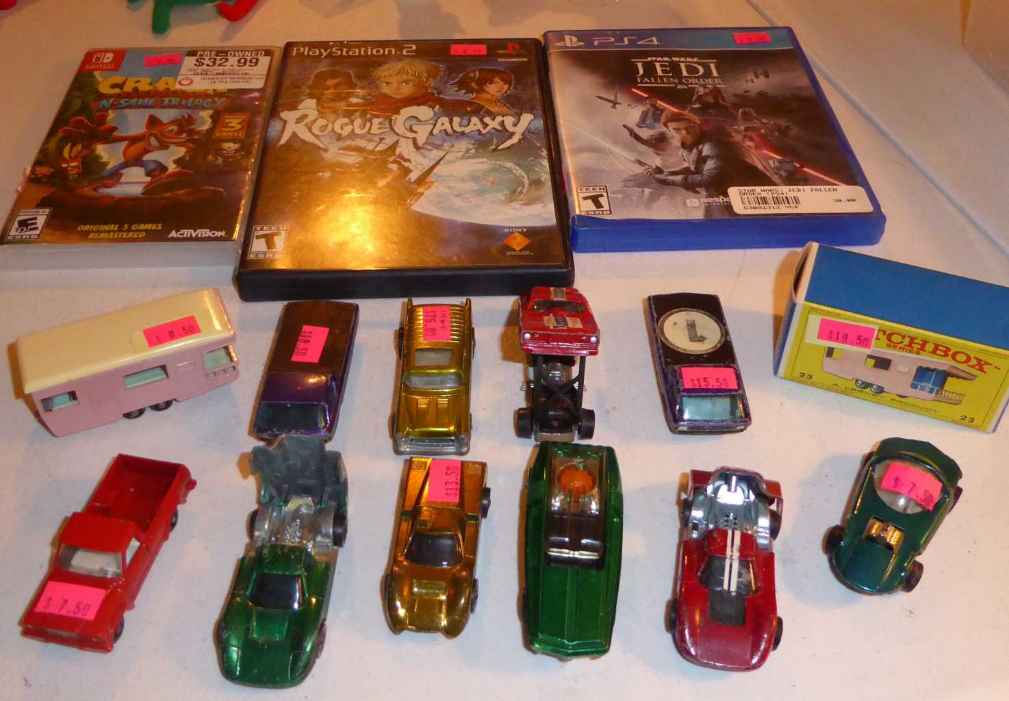 Vintage treasures throughout this fun estate sale located at 4060 Willhi St., Eugene (off of Echo Hollow), 11:00 a.m. to 4:00 p.m., pair of mid-century amber swag lamps, Red-Line Mattel Hot Wheels cars, Barbie dolls, vintage linens & quilts, dollhouse kits & dollhouse furniture, lots of vintage clothing, crafters & sewers delight (fabric, yarn, notions, lace, buttons, 2 sewing machines, etc.), cake decorating supplies, jewelry making & beads, Christmas decor, overflowing kitchen, vintage tupperware, KitchenAid stand mixer, cast iron, 2 Queen beds, full-size bed, twin bed, 4 chests-of-drawers, 2 recliners, sofa, fridge, washer & dryer, small chest freezer, lots of yard & hand tools, Craftsman tool chest, some fishing & camping gear, teak adirondack chairs, 2 Fiskar push mowers & more!