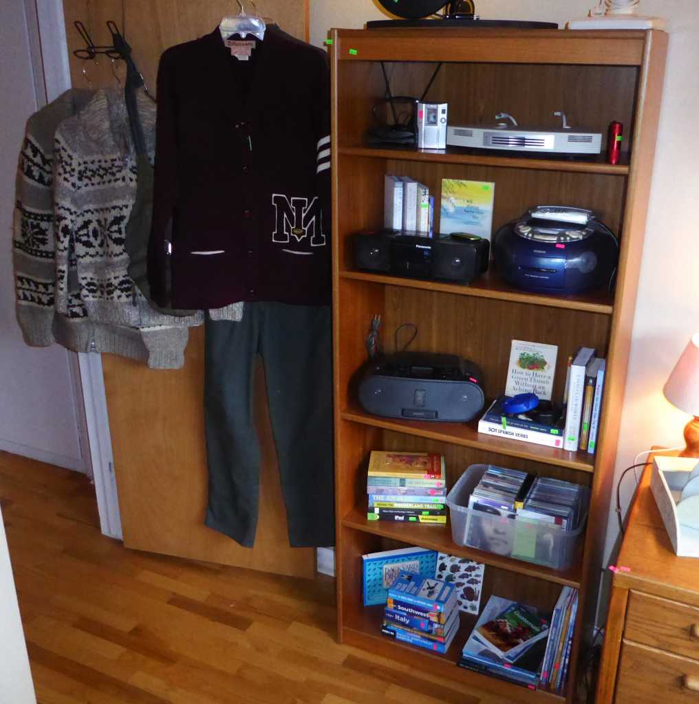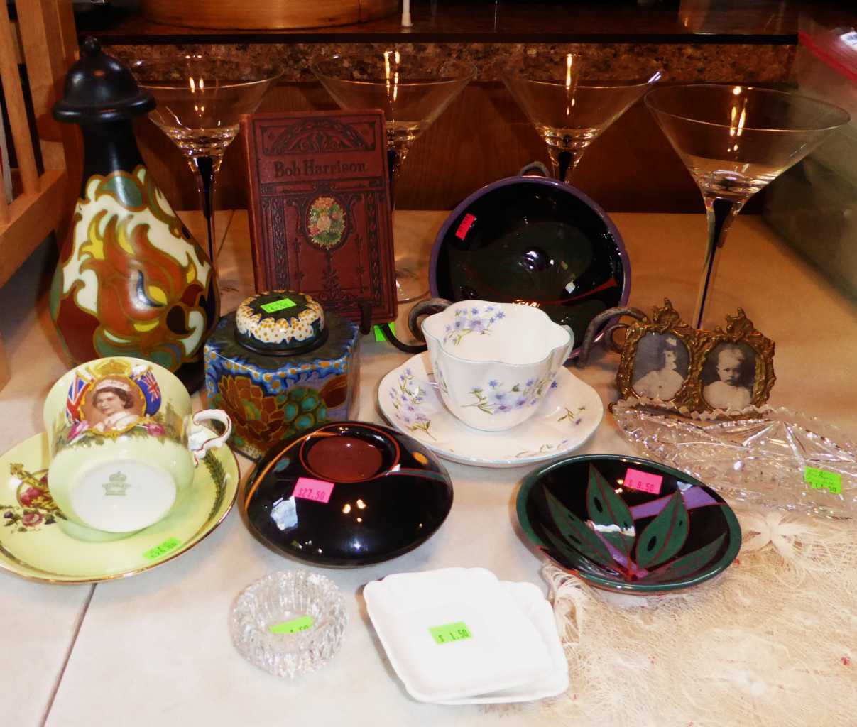 Eclectic antiques, collectibles & decor throughout this charming home. Friday, Saturday & Sunday, 11:00 a.m. to 4:00 p.m., 2467 Friendly St., Eugene, featuring primitive blanket chest, deep purple sleeper sofa, pine chifferobe, antique oak secretary cabinet, drop-leaf dining table, mid-century German table lamp, tall teak Danish bookcase, vintage "stacked book" end table, artisan baskets, Gouda & Santa Fe pottery, c. 1930's Asian brass decor, Mexican Folk Art, antique uranium glass Aladdin lamp, rare triple-fused fishing float, some vintage & name-brand clothing, jewelry, full kitchen, steamer trunk, 2 La-Z-Boy recliners, twin-size bed, student desk, oak computer desk, wool yarn & knitting supplies, pet supplies, wheelchair, Weber and Char-Broil gas grills, small patio tables, some yard decor, composter, garden & hand tools & more!
