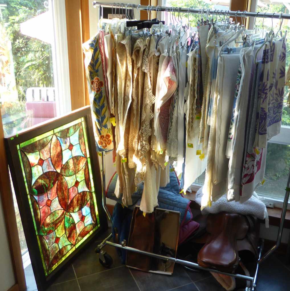 Fun & eclectic sale throughout this charming home! Friday, Saturday & Sunday, 11:00 a.m. to 4:00 p.m., gorgeous teak Benny Linden dining set, antique sideboard, chest-of-drawers & chifferobe, industrial oak card file cabinet, primitive desk, 1905 architectural salvage doors, stained glass windows & tiffany style light fixture, unique vintage clothing & jewelry, original art, oodles of ephemera (sheet music, 1930's magazines, postcards, etc.), interesting books, LP's (jazz, blues & rock), sewing notions, tailor's dress forms, antique sewing machines, wool carpets, wall mirrors, bauer, pacific, blue willow & lots of other antique pottery & dinnerware, American Brilliant-cut crystal, cast iron, enamelware, Champion juicer, food dehydrator, vintage linens & quilts, primitive musical instruments, vintage dolls, home salon facial steamer & portable sink, Commercial Cool Room air conditioner, Avanti saddle, Specialized Sirrus bicycle, patio set, vintage lawn furniture, lots of potted plants, cacti & planters, yard decor, yard & hand tools, Ryobi Brushless lawnmower, manual push-mower, extension ladder & more!