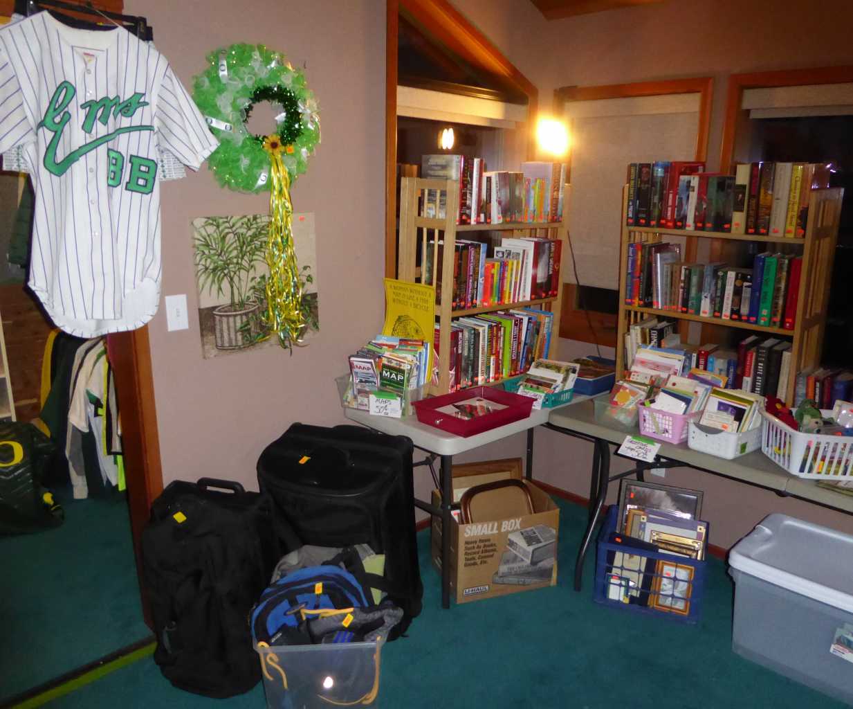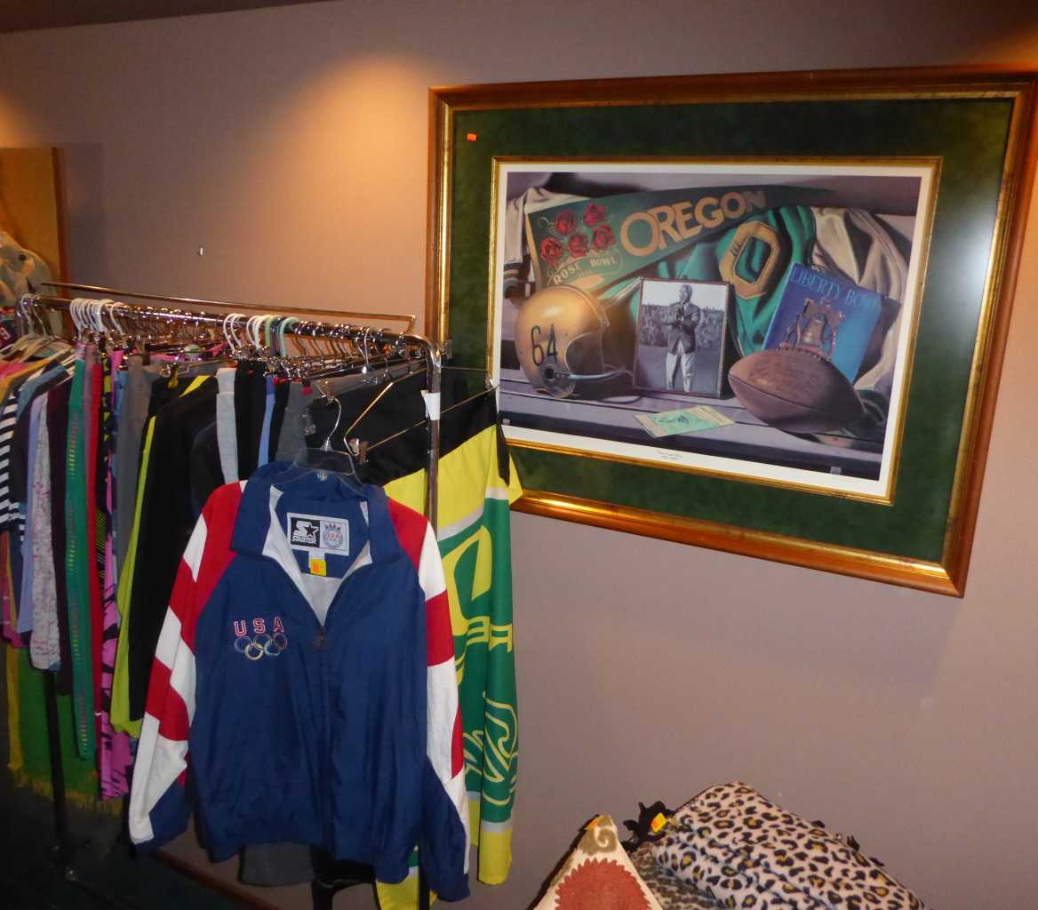 85368 Ridge Top Dr., Eugene (Dillard Rd. to Eagles Aerie to Ridge Top), Thursday, Friday, Saturday & Sunday, 11:00 a.m. to 4:00 p.m. So much to see! Designer clothing, shoes & handbags, room full of western ware & decor, vintage graphic tees, huge collection of signed limited edition prints by Bev Dolittle, as well as Charles Wysocki, Stephen Lyman & more, original bronze figures by Nnamdi Okonkwo, original art by Dawn Emmerson, U of O collectibles (including Luke Jackson & Chris Miller signed jerseys), signed books, large Christmas room filled with delights (Debbee Thibault signed figures, Radko, Lynn Haney Santa sculptures, Dept. 56 Christmas village & more!), jewelry, signed art glass, pottery, crystal by Waterford, Orrefors, Lenox, Ridel & more, Scandinavian & African collectibles, vintage Lionel train set, quality household linens, full kitchen (Cutco, All-Clad, Le Creuset & more!), kids furniture, brand-name clothing, books & toys, Muffy VanderBear collection, maternity clothing, sewing fabric, upholstered furniture by Stickley, Baker, Norwalk & Universal, pair of leather Italian library chairs for Milling Road (Baker), antique oak sideboard w/mirror, bookcases, bar stools, La-z-Boy twin sofa-sleeper with storage ottoman, Polaski curio cabinet, vintage pub chairs, Persian carpet, combination bumper pool table/dining set, oak dining set & china cabinet, Queen mattress & box spring, CD's, DVD's, vintage neon Budweiser sign, horse tack, Phoenix West tack trunk, Miele vacuum cleaners, luggage, upright freezer, file cabinets, antique iron headboard/footboard, Specialized mountain bikes, sporting goods, boxing equipment camping gear, Parabody 425 universal weight machine, vintage Homecrest patio set, pet supplies, tools & hardware, planters, yard tools, Yard- Man tiller & more!