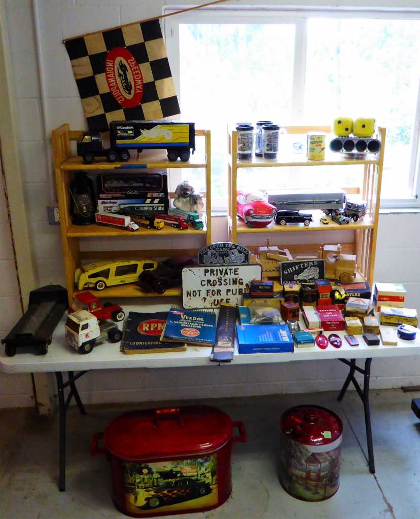 Lifetime collection of antiques & uniques! 33260 McKenzie View Dr. Eugene (near Armitage Park off Coburg Rd.), Friday, Saturday & Sunday, June 1st, 2nd & 3rd, 11:00 a.m. to 4:00 p.m. Hot rod/racing memorabilia, old license plates, toys (vintage & new), 1955 Cushman Eagle/Husky, Schwinn bicycles, fire truck barber chair, Coke vending machine, cool juke box, antique cast iron Caille Bros. penny scale, vintage advertising, antique Hall's floor safe, LP's & 45's, books, jewelry, Fitz & Floyd, brand-name Men's & Women's clothing, antique showcases, Sessions Regulator calendar wall clock, Amish oak dining set, Ethan Allen roll-top desk, corner curio cabinet, antique pew, tools, hunting/fishing gear, ammo, archery equipment, canoe, TEC Patio II gas grill, yard decor & more!