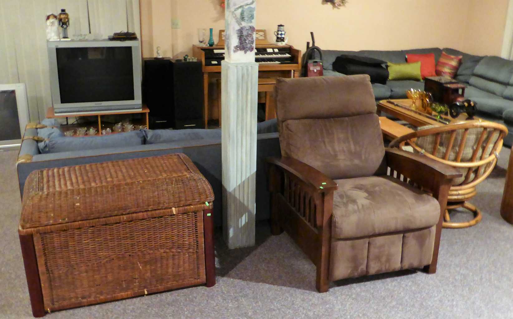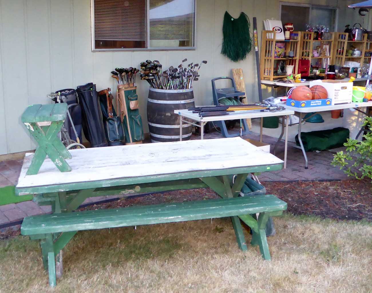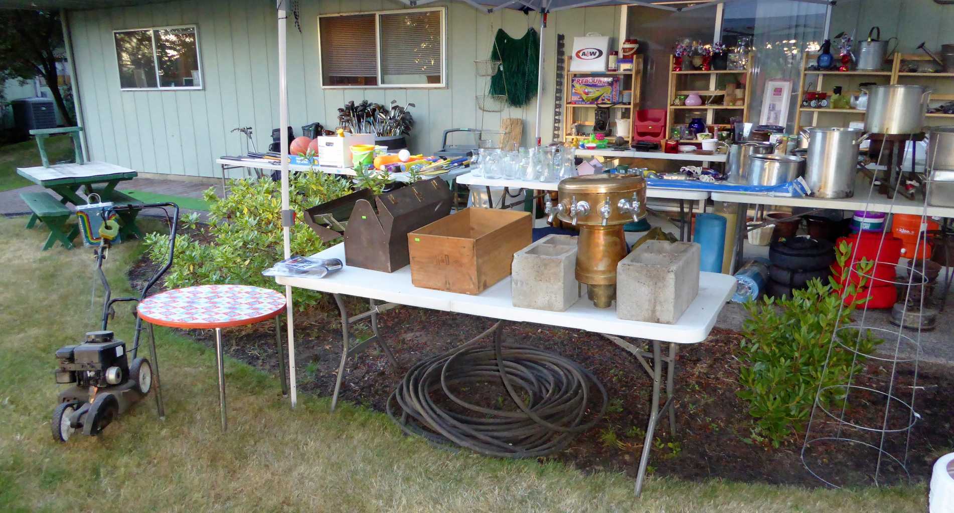 Friday, Saturday & Sunday, 11:00 a.m. to 4:00 p.m., 2150 Buck St., Eugene, (off of W. 18th Ave.), cool 1930's architectural salvage from the St. John's bridge, Burke Tulip bar stools, Seeburg 222 juke box, mid-century rattan swivel chairs, Cerwin-Vega floor speakers, mid-century campaign chests, bentwood chairs & stools, vintage sewing chest, antique coat racks (1 brass & 1 bentwood), rotating Budweiser sign, rustic cribbage board/bench, antique chairs, Victrola VV-XI, elegant sofa, china cabinet, 2 pc. sectional sofa, fun denim sleeper sofa, recliner, rocking chair, student desk, books, vintage children's books, jewelry, Moss Rose collection, fun collectibles, Budweiser steins, fishing gear, vintage golf club collection, Jet propane burners, garden benches, patio furniture, yard decor & more!