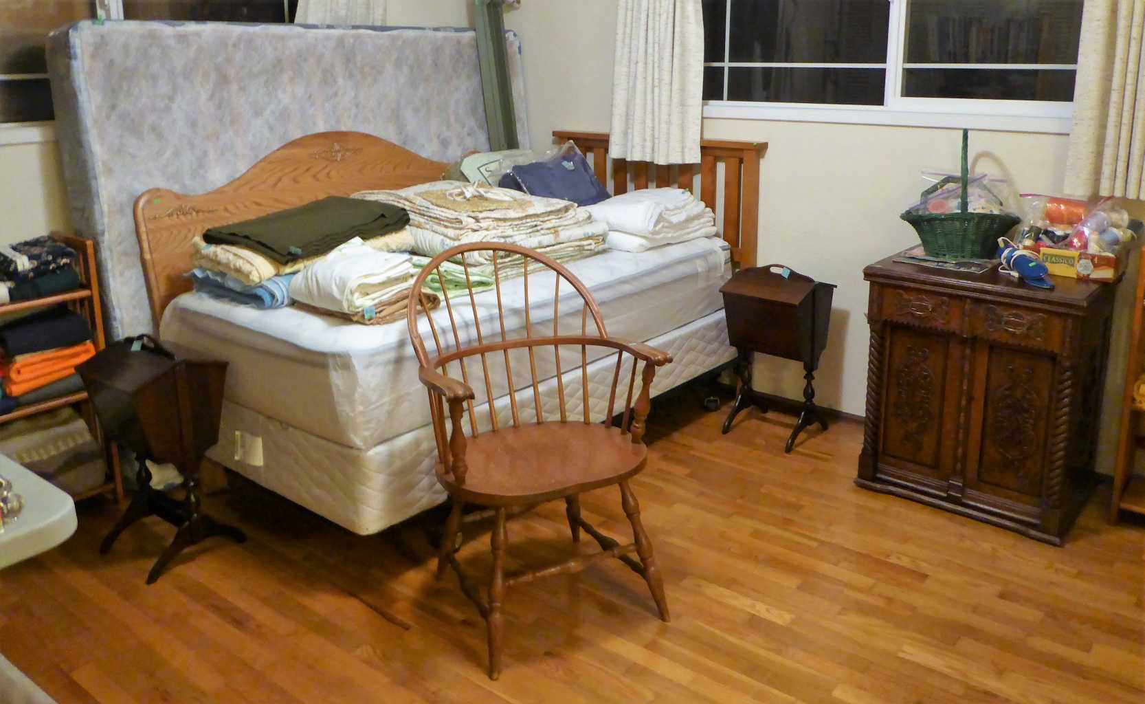 Friday, Saturday & Sunday, 11:00 a.m. to 4:00 p.m., 1448 Yolanda Ave., Springfield, (Hayden Bridge Rd. to Harvest Lane to Yolanda), wonderful antiques throughout including Birdseye maple sleigh bed & matching Empire highboy, unique oak sideboard, beautiful gate-leg dining set, marble-top parlor table, Victorian sofa & armchairs, sewing cabinets, trunks, advertising tins, bottles & jars, cast iron & more; also interesting books (local history, mining, logging, etc.), LP's, 70's Schwinn Suburban bicycle, sewing notions, fabric, embroidery cards, Flexsteel sofa, solid oak dresser w/mirror, full & twin size beds, bar stools, rocking chairs, Driscoll paintings, Otagiri stoneware, English porcelain, cute turquoise fridge, Men's work clothes, new & antique hand, power & garden tools, large tanned elk hide, mining sluice, lumber & artisan wood, scrap metal & more!
