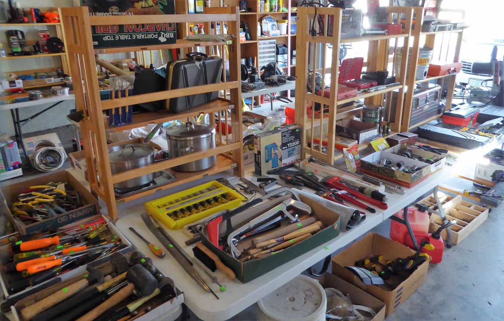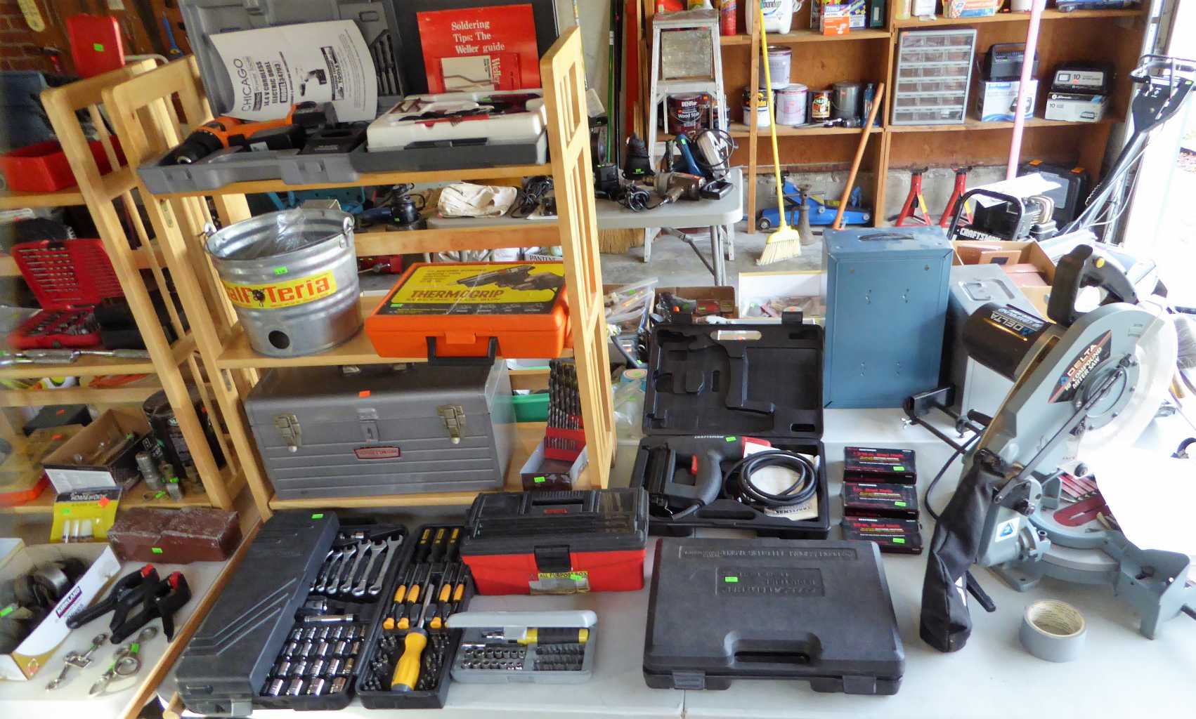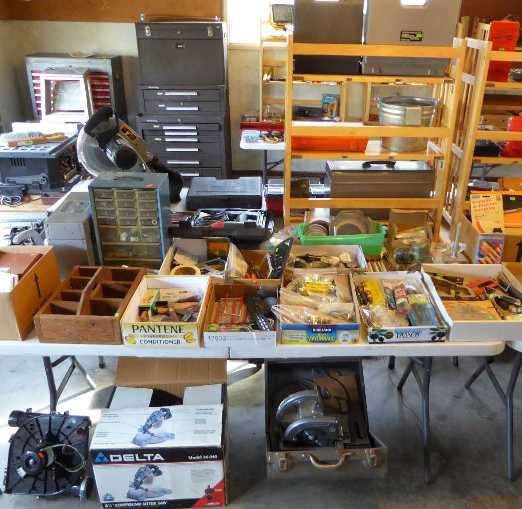 322 Jonquil Ave., Eugene, Friday, Saturday & Sunday, 11:00 a.m. to 4:00 p.m., lovely mid-century teak dining set by Johannes Andersen, vintage Japanese decor including Raku pottery, lacquered tea crate, Japanese display cabinet, Japanese harp & more; also Appalachian dulcimer, BabyLock serger, full & twin beds, dressers, office furniture, curio cabinet, nice kitchen usefuls, upright freezer, inversion table, garage full of quality tools: Craftsman, Delta, Ryobi & Makita power tools, Craftsman, Proto & Snap-On hand tools, power washers, Craftsman rear-tine tiller, Stihl string trimmer, Kennedy machinist's tool chest, ladders, wheelbarrows, yard & garden tools, picnic table, crab pots & more!