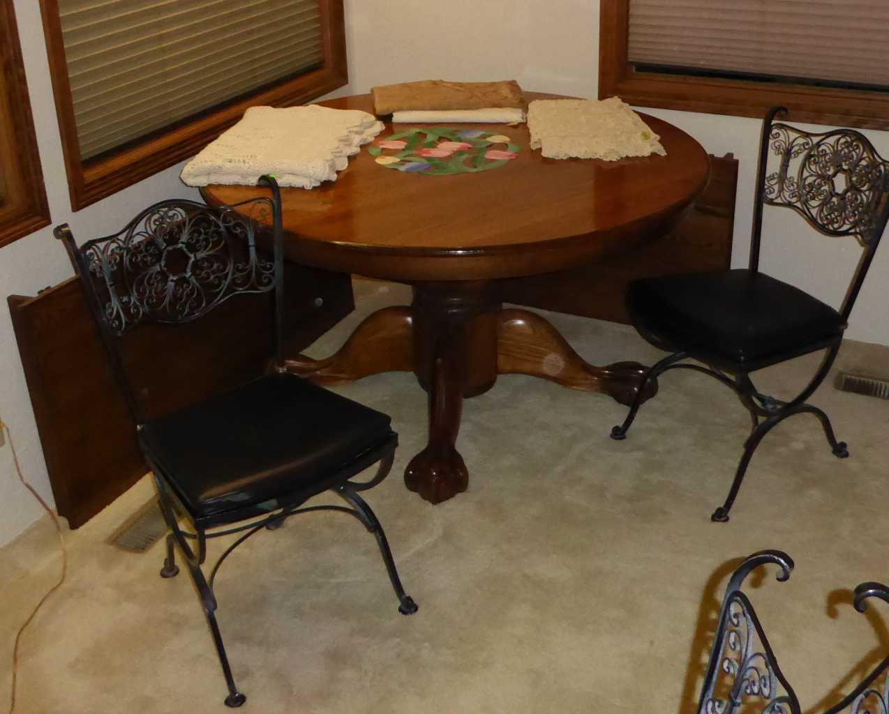 Friday, Saturday & Sunday, 11:00 a.m. to 4:00 p.m., 414 S. 69th Place, Springfield, beautiful oak claw-foot dining table, vintage Woodard wrought-iron dining chairs, elegant curio cabinet, leather sofa, king-size bed, bar stools, Singer "Rocketeer" sewing machine w/cabinet, sewing notions, art supplies, jewelry, pottery, Fire King Jadite & Delphite, Christmas, primitives, LP's, paintings, luggage, full kitchen, Cutco, new Maytag front-load washer & dryer, upright freezer, model airplanes, yard & garden, planters, Weber grill, 1981 Schwinn bicycle, atomist stationary fogger & more!
