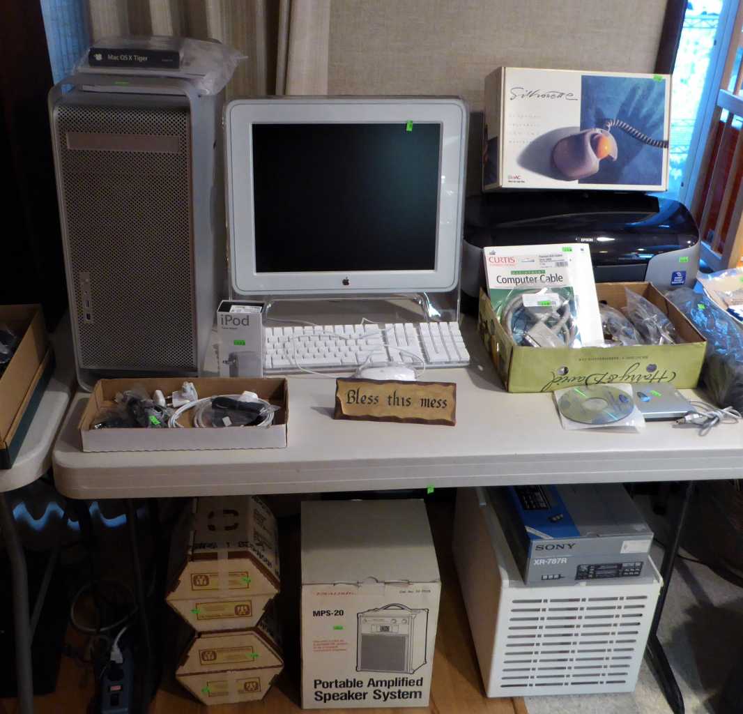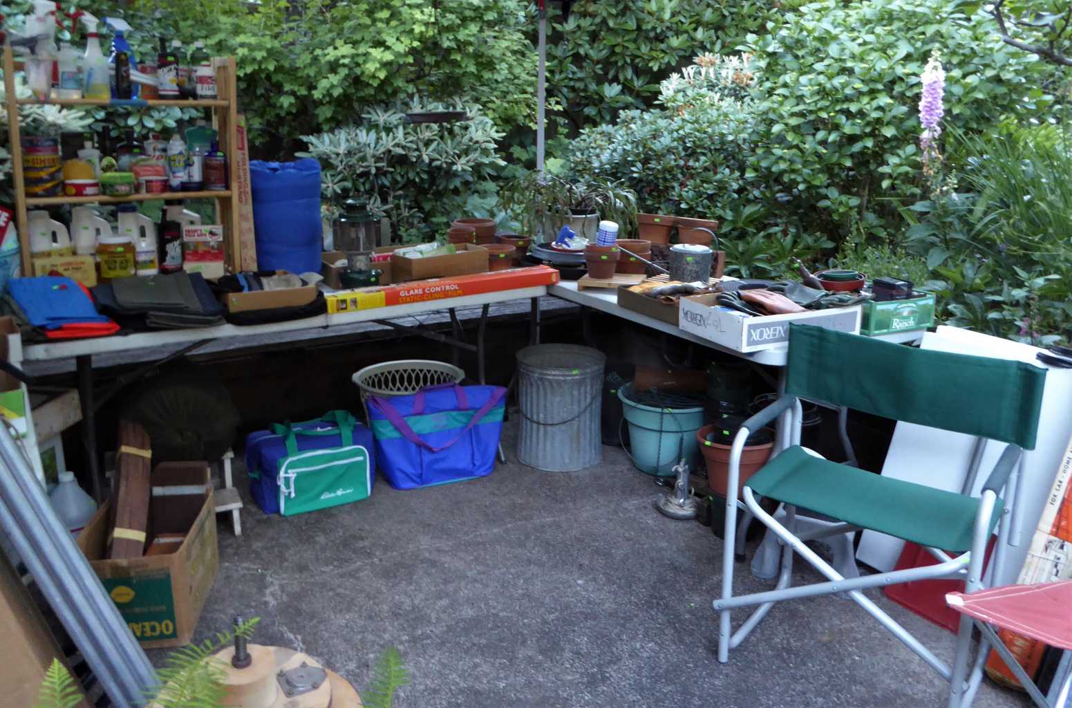 Friday, Saturday & Sunday, 11:00 a.m. to 4:00 p.m., 185 E. 39th Ave., Eugene (off of Donald St.), 3 Bike Fridays (1's a tandem!), vintage Schwinn, camping & hiking gear, electronics, Acoustic Research AR-10 speakers, cameras, records, CD's, Apple computer, antique secretary desks, Queen Tempurpedic sleigh bed, custom-made storage cabinets, recliners, sleeper sofa, Arts & Crafts wrought iron floor lamp, antique rocking chair, art, linens, Rookwood & Weller pottery, antique & vintage toys, sewing notions & fabric, name brand clothing, air brush & art supplies, books, maps, file cabinets, office supplies, full kitchen, upright freezer, 8' pool table, 2 Folbot kayaks, potted plants, hardware, scrap lumber & more!