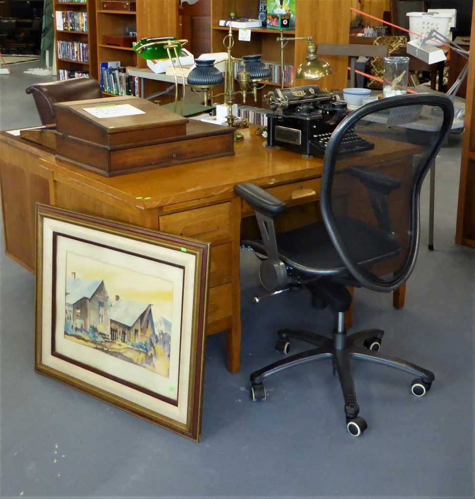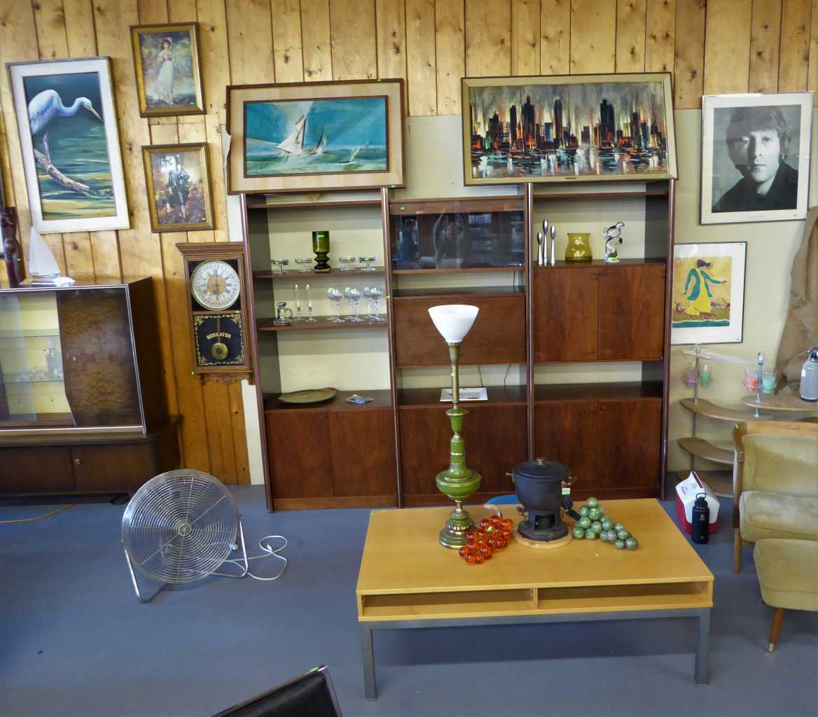 Thursday, Friday, Saturday & Sunday, 11:00 a.m. to 4:00 p.m., 2750 Roosevelt Blvd., Eugene. Amazing antique furniture: hall trees, lawyer's stacking bookcase, armoires, sideboards, dressers, chests-of-drawers, desks, dental cabinets & chair: also mid-century modern: dining table, modular steating, Jere end tables, wall unit, bar cabinet, etc.; walls of framed original art & prints (many listed artists), sports collectibles, antique clocks, lamps & lighting, stained glass panels, church pews, primitives, 1878 Parker Bros. black powder shot gun, industrial, safes, electronics, tools, ladders, bicycles, exercise equipment, retail shelving, DVD's, CD;s, refrigerator & more!
