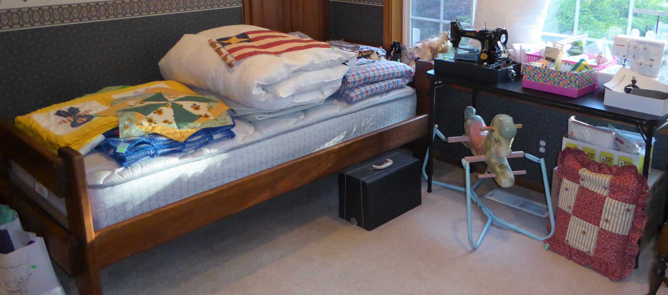Social distancing is easy in this spacious home! Thurs., Noon to 4:00 p.m., Fri., Sat. & Sun., 11:00 a.m. to 4:00 p.m., (gate opens 1 hour prior to start of sale), 34276 Countryview Dr., Eugene, take I-5 to Coburg exit, East on Van Duyn to entry gate (less than 10 minues from Beltline & I-5). Luxurious household goods, whimiscal decor, designer clothing & handbags, silverplate, jewelry, art, linens, quality backpacking/camping/fishing gear, sporting goods/games, new & vintage toys, gourmet kitchen, books, LP's, electronics, sheet music, 70's Ficks Reed rattan furniture, 60's Thonet bistro chairs, formal Hickory White sideboard, dining set, armoire, bookcases, Queen memory foam platform bed, twin bed, Janome serger, sewing machine, notions, art/craft/jewelry making supplies, yarn, holiday decor, shabby chic, refrigerator, upright freezer, fire safe, Kettler ping-pong table, Weber gas grill, patio furniture, Trek Cruiser bicycle, yard decor & more! For everyone's health & safety masks will be required.