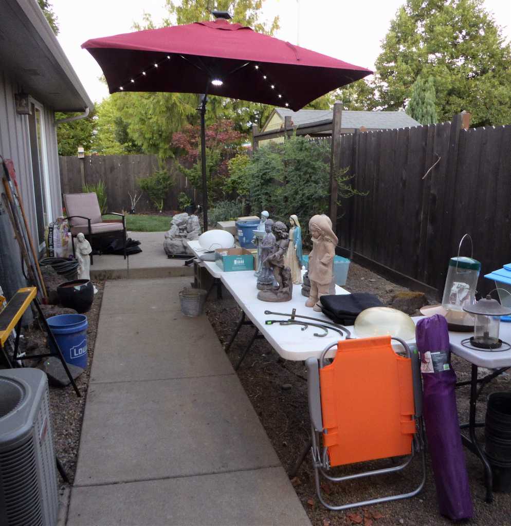 Fun & eclectic, Friday, Saturday & Sunday, 11:00 to 4:00, 1655 Calistoga Ct., Eugene (off of Barger Dr. & Legacy St.), contemporary furniture, framed art, Patrie acoustic guitar, percussion instruments, art supplies, open flat file cabinet, beading/jewelry making, Baby Lock sewing machine, sewing/craft cabinet, yarn, plus size clothing, books, LP's, CD's, quality electronics, iMac computer, reclining sofa & loveseat, sleeper sofa, dinette set, bookcases, Queen size Sleep Number bed, dresser, nightstands, cantilever patio umbrella, yard decor, garage shelving, Ryobi drill press, power tools, ladders & more!