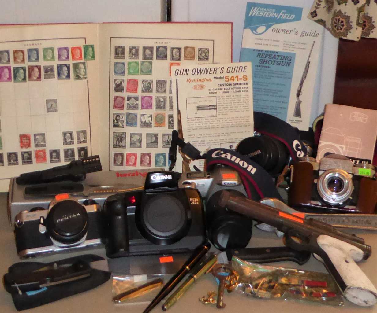 Friday, Saturday & Sunday, 11:00 a.m. to 4:00 p.m., 85861 S. Willamette St., Eugene, (very limited parking), 1930's Daisy #25 BB gun, vintage bicycles (1949 Raleigh (original owner)), Nishiki, Dyno VFR & others), Lervad (Denmark) woodworking bench, tools (hand, power & garden), JDS Air-Tech dust removal system, woodworking supplies, ladders, some fishing & camping gear, primitives, cast iron, pottery, weaving looms, cameras, interesting books, stamps, vintage yellow kitchen cart, quality cookware galore, some vintage Fiesta, blonde china cabinet, Ashley wingback chair, dressers, twin bed, office supplies, manual typewriter, file cabinets, Viking sewing machine, case items, unique collectibles throughout & more!