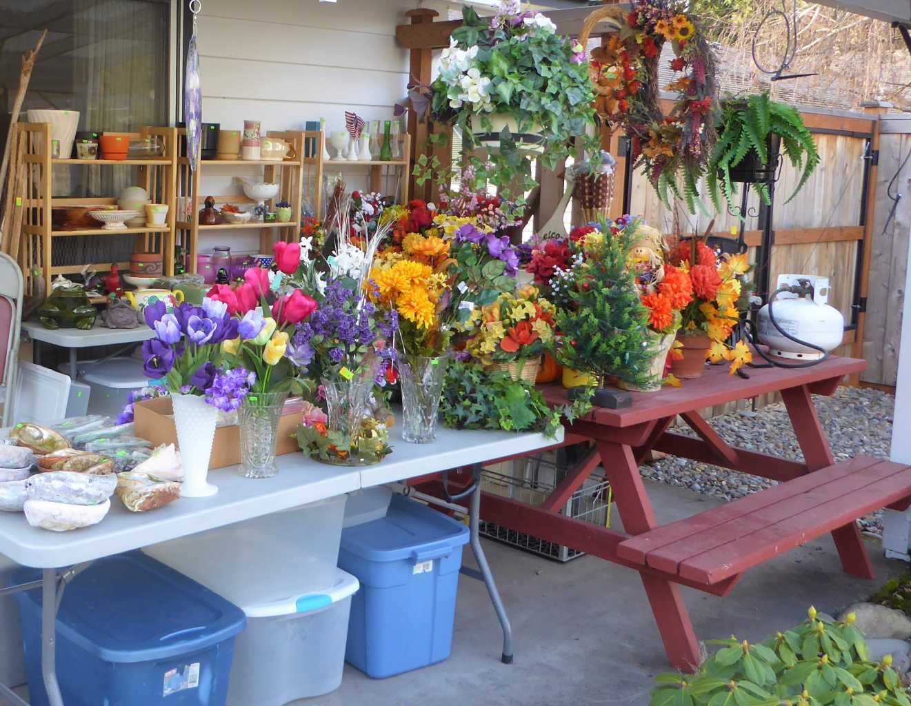 Friday, Saturday & Sunday, 11:00 a.m. to 4:00 p.m., 2683 Oxford Ct., Eugene (River Rd. to Irving to Oxford Ct.), 60+ years accumulation throughout this lovely home, garage, shop & yard! Antique & Mid-Century furniture: Eastlake parlor table, curio cabinet, cedar chest, 1950's end tables, vintage live-edge Buckeye burl tables, chrome & glass dining table, Hollywood Regency etagere, retro upholstered chairs, loveseats & more! Also, Mid-Century lighting & glassware, quilts, spool cabinet, Fenton, Candlewick, Limoges, Christmas, Singer sewing machine 401A, notions, vintage electronics, CD's, books, some LP's & 45's, some vintage toys, name-brand women's clothing & shoes (L to XL), paintings, lamps, jewelry armoire, dresser, like-new Beauty Rest King-size bed, recliner, chrome diner stools, full kitchen, lavender KitchenAid Artisan stand mixer, side x side refrigerator, upright freezer, LG washing machine, utility cabinet, florist supplies, pot belly stove, large gun safe, hunting & fishing gear, skeet shooting memorabilia, hand tools, ladders, Craftsman air compressor, work benches, radial arm saw, picnic table, yard decor & more!
