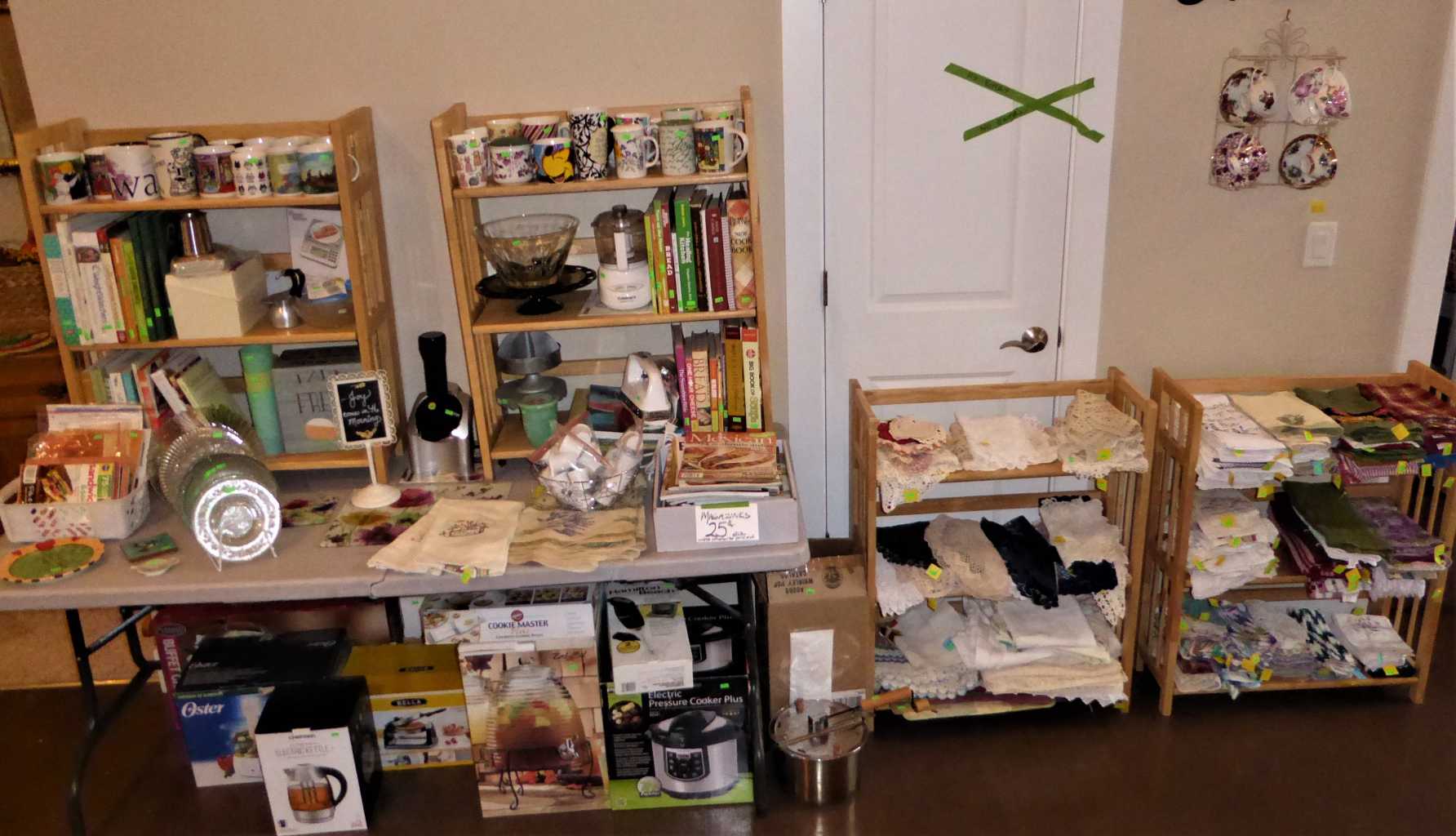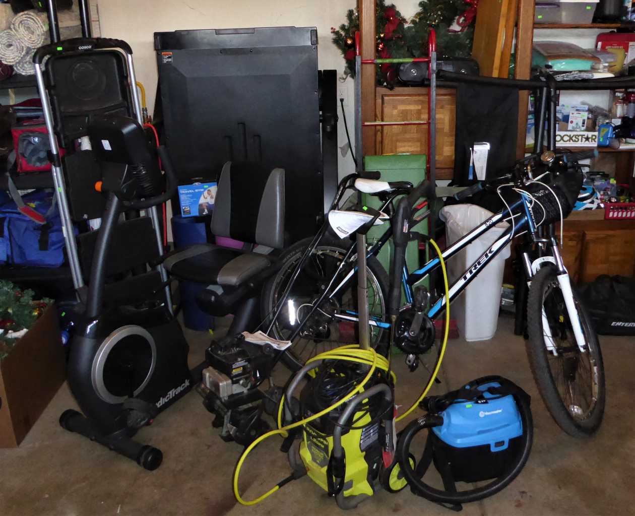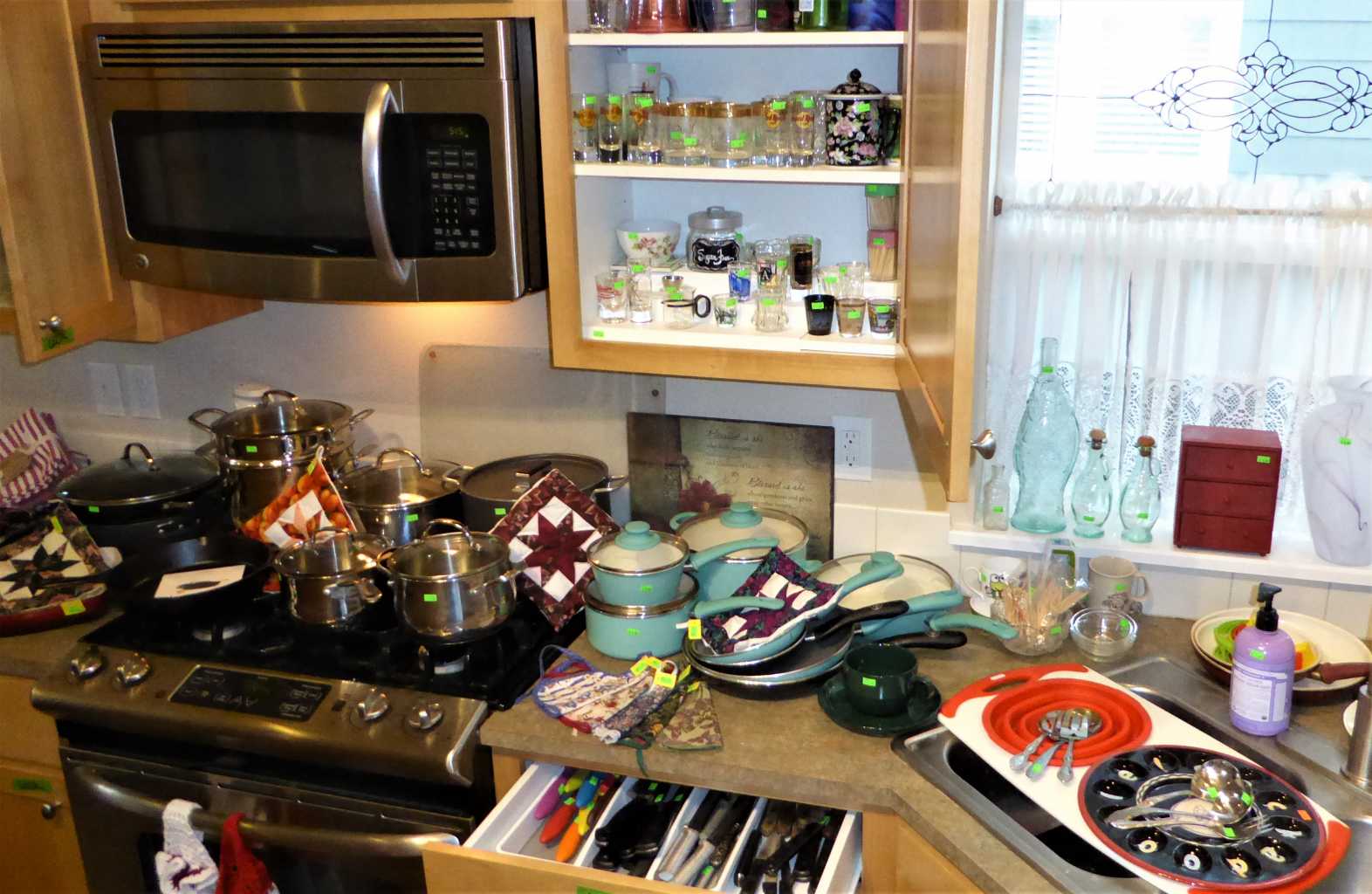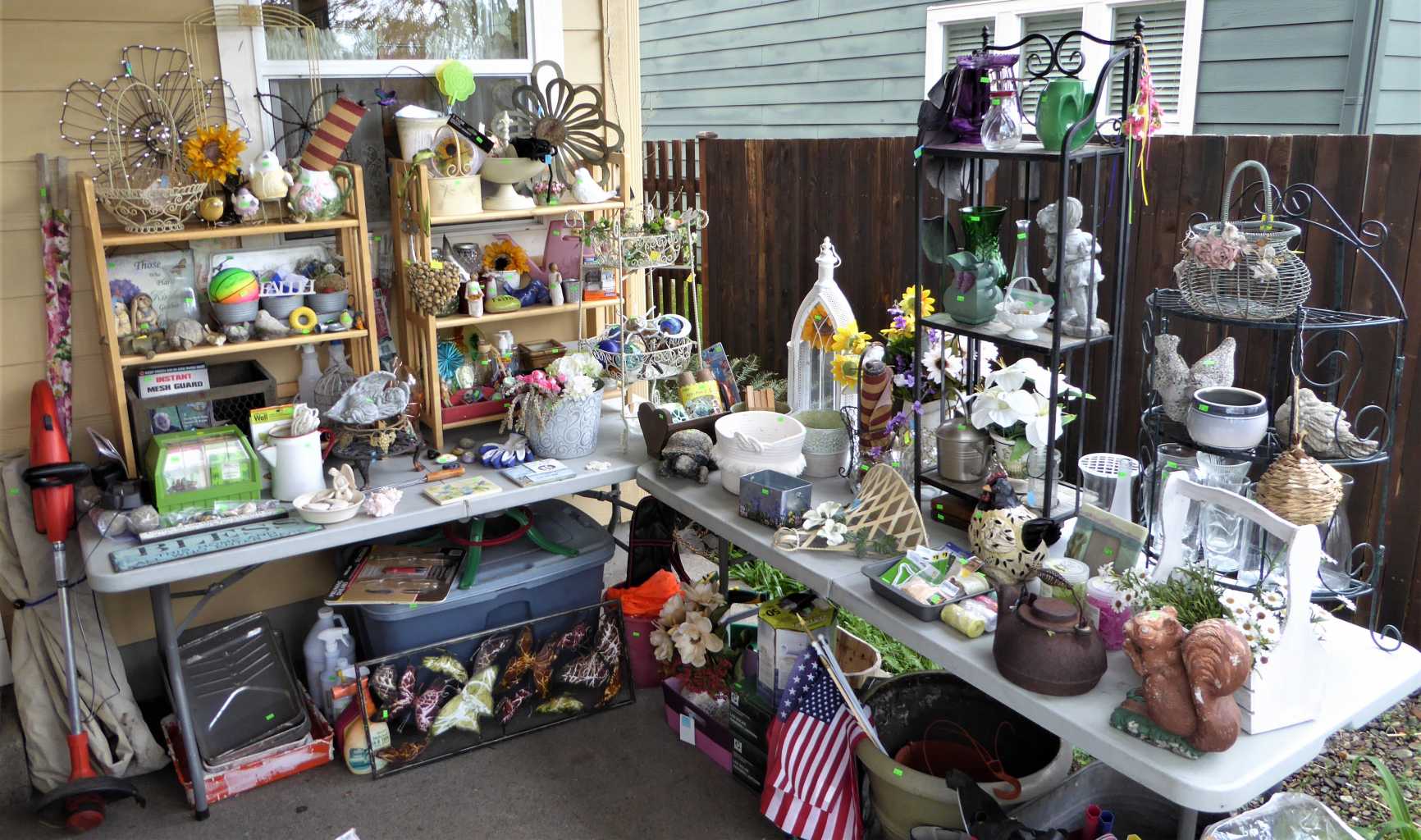 Thursday, Noon to 4:00 p.m., Friday, Saturday & Sunday, 11:00 a.m. to 4:00 p.m., 1290 Alderdale Dr., Junction City (Oaklea Dr. to W. 15th to Breckenbridge Dr. to W. 13th to Alderdale), antique dressers, shabby chic, Christmas, roll-top desk, oak file cabinet, contemporary sofas, glider rockers, oak dining set, gourmet kitchen, Apple Red KitchenAid stand mixer, red VitaMix, linens, sewing notions, quality women's clothing, 60's Barbie dolls, electronics, CD's, DVD's, some LP's, books, bookcases, treadmill, NordicTrack recumbent exercise bike, Trek 820 mountain bike, WhiteGate woodworking bench, garage shelving, hand tools, ladders, pet supplies, charming "She-Shed," primitives, garden tools, yard decor, planters, concrete statuary, redwood garden swing & more!