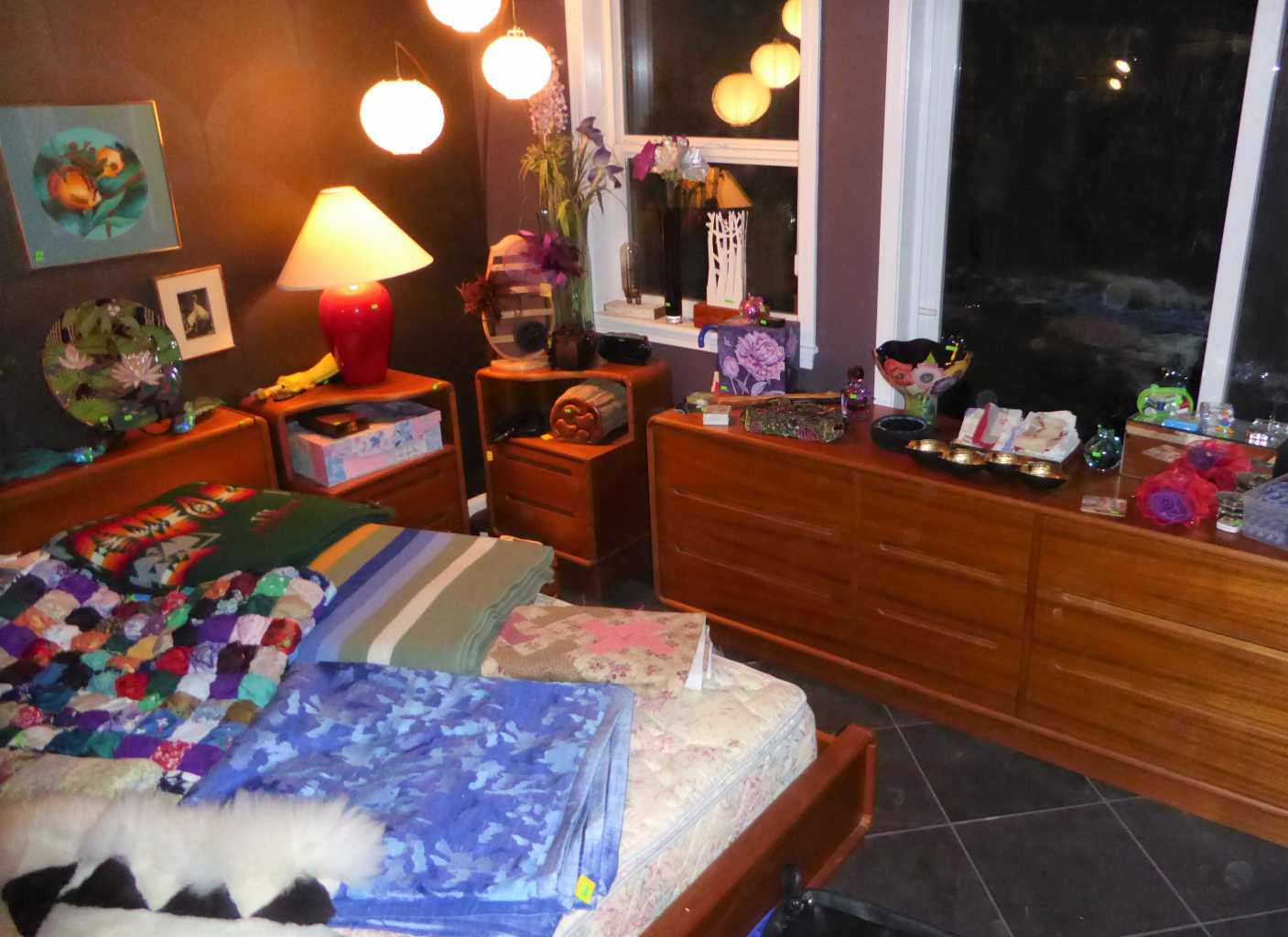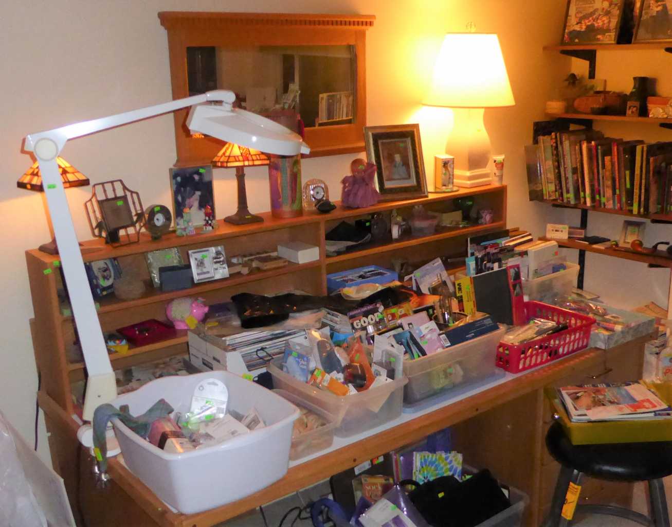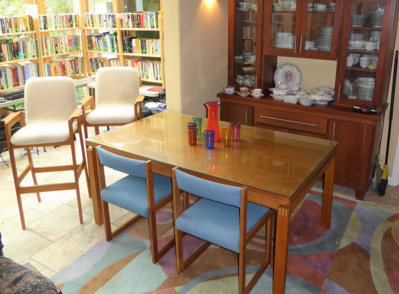 Thursday, Noon to 4:00 pm, Friday, Saturday & Sunday, 11:00 am to 4:00 p.m., 2784 St. Lucia St,, Eugene (off of Crescent), teak dining set, bedroom set, bookcases, lounge chair, curio cabinets, bar stools & desk, cedar chest, antique writing desk, library of books, LP's, CD's, DVD's, cameras, Yamaha keyboard, fine art, vaseline glass, pottery, art glass, Edward Gorey collection, textile studio featuring: Fireside 42", 6 shaft loom w/bench, Clemes & Clemes electric drum carder, 16", 8 shaft Nilus Leclerc Dorothy model table loom, Spinolution Pollywog spinning wheel, Schacht electric double end bobbin winder, Harrisville design warping reel, fiber cone tree, swift, yarns galore, Juki serger & Bernina sewing machine; jewelry and jewelry making supplies, stunning clothing, gourmet kitchen, upright freezer, floor safe, tools, tool chests, Trek 7900 bicycle, pet supplies, yard decor, concrete statuary & more!