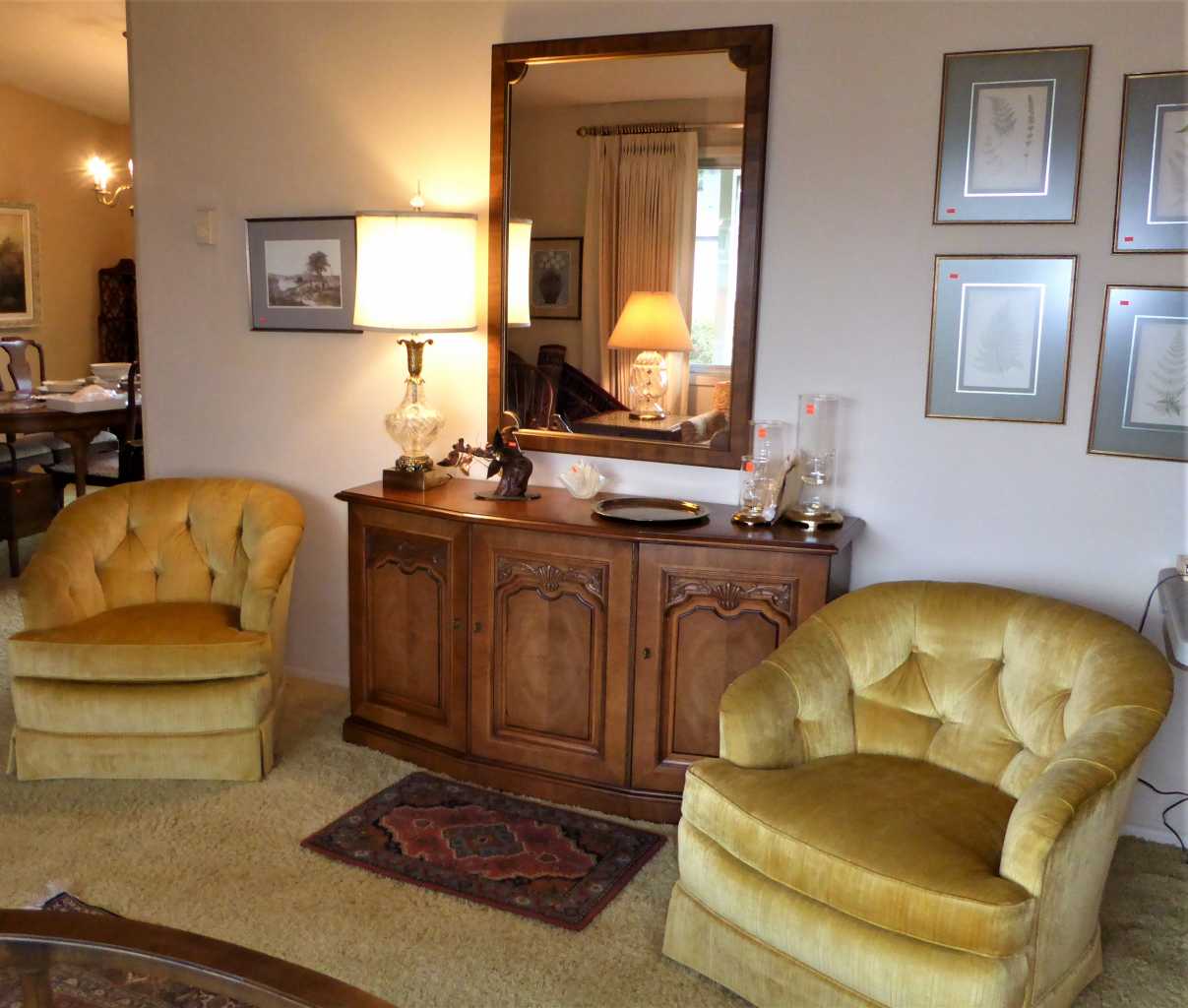 Only the best throughout this elegant home! Friday, Saturday & Sunday, 11;00 a.m. to 4:00 p.m., 294 Sterling Dr., Eugene (River Rd. to Silver Lane to Sterling Dr.), Henredon library table, Drexel game table, Ethan Allen casual dining set, mid-century Henredon sofa, Lexington wicker bedroom set (dresser w/mirror, night stand & headboard), Henredon formal dining set, sideboard with mirror & buffet server, Henredon vintage dresser w/matching headboard, Queen & Full size beds, nesting tables, mid-century wall unit & coffee table, club chairs, antique corner etagere, sheet music cabinet, Schafer Bros. leather club chair, Art Deco humidor, Karastan carpets, Waterford crystal, Empress Dresden Flowers porcelain, Tiffin Flanders crystal, collectible pottery, signed vintage jewelry, vintage linens & blankets, quilts, sewing notions, vintage hats and purses, Christmas decor, full kitchen, KitchenAid stand mixer, cookbooks, enamelware, Red Line Hot Wheels, vintage sneakers, small Whirlpool fridge, cool vintage freezer, fishing, tools, ladders, vintage Coleman coolers, oodles of gardening supplies & more!