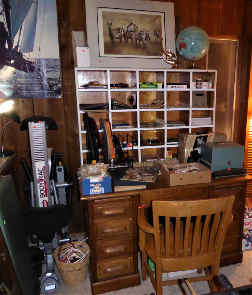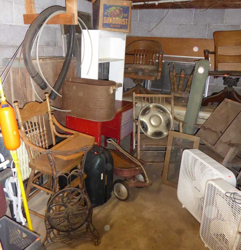 70+ years accumulation at 734 Summit Blvd., Springfield (D St. to Riverview to Summit), Friday, Saturday & Sunday, 11:00 a.m. to 4:00 p.m., featuring industrial antiques including a cast iron commercial mangle (wringer), 70's sofa & lounge chair by Howard Furniture Co., antique Louis Vuitton wardrobe trunk, Henredon Artefacts nightstands, antique oak dining table, antique oak desk, mid-century desk, upright piano, vintage clothing, jewelry, 70's decor, vintage electronics, books, toys & games, Positive Posture lift-chair, cameras, cast iron, primitives, shabby chic, Christmas, sewing, full kitchen, cookbooks, chest freezer, canning jars, old bottles & jars, garden tools, hand tools, potted plants, yard decor, a basement full of undiscovered treasures & more!