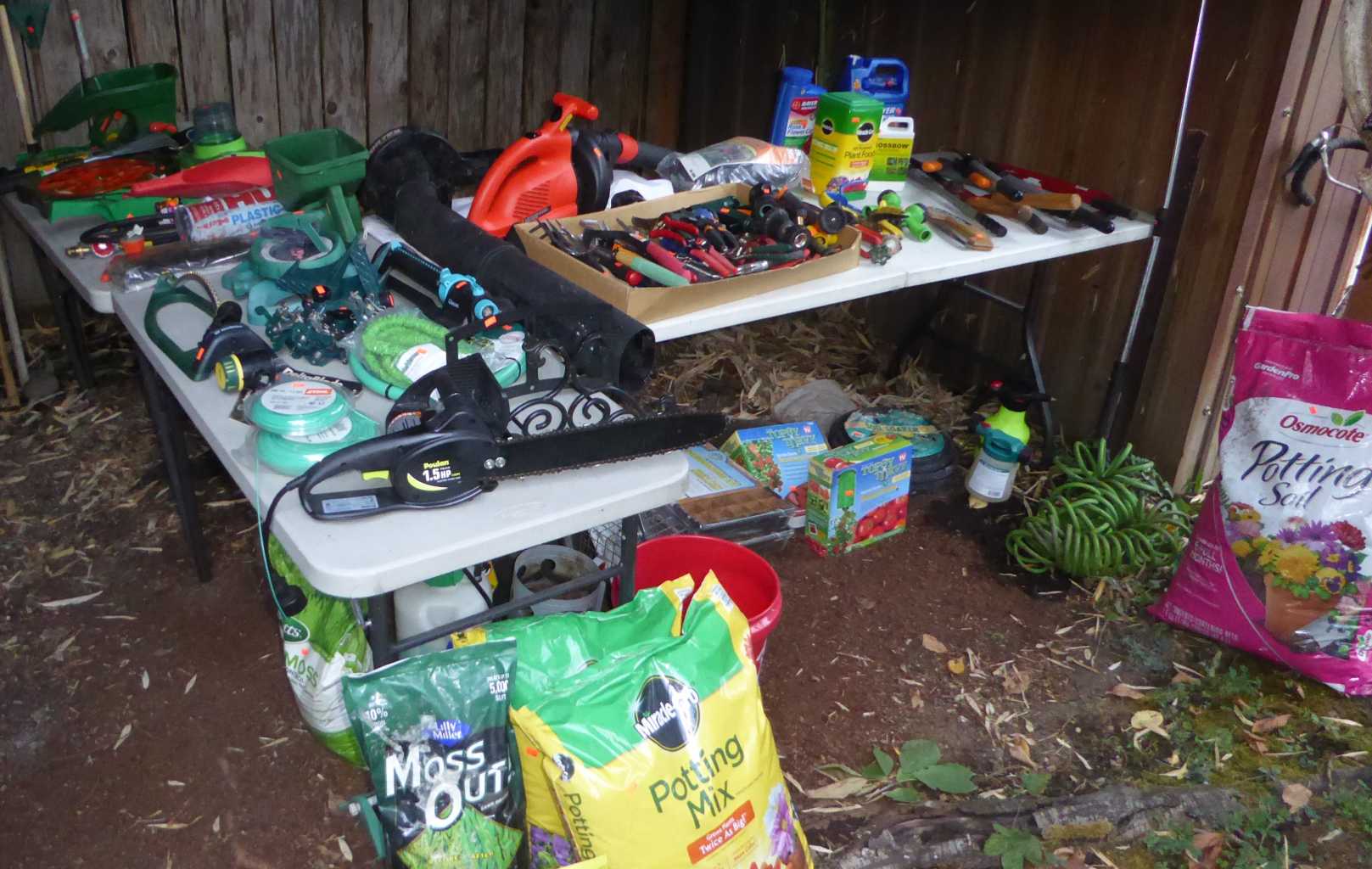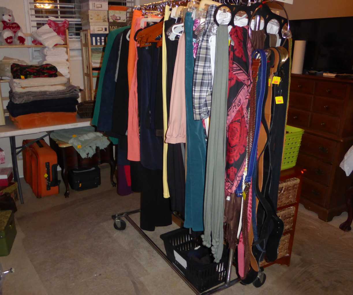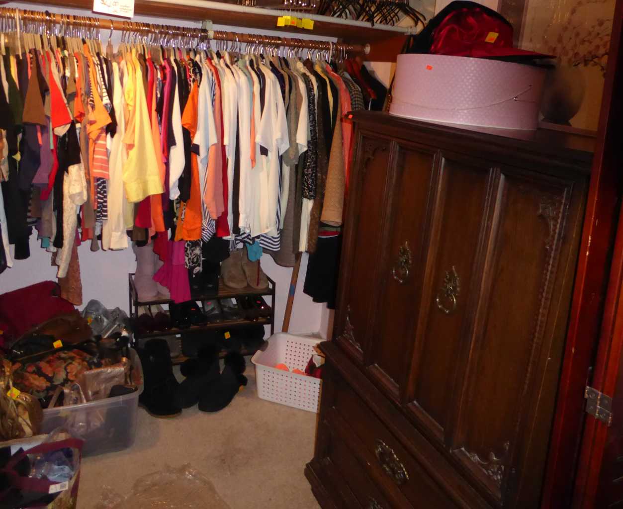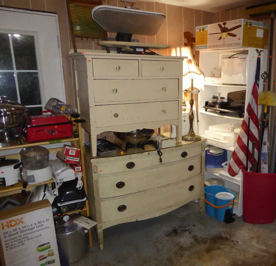 Bursting at the seams with quality goods! Thursday, Noon to 4:00 p.m., Friday, Saturday & Sunday, 11:00 a.m. to 4:00 p.m., located at 2496 Debra Dr., Springfield (off of Hayden Bridge Way). Garage full of power tools including Ryobi band saw & Delta compound miter saw still new in the box, grinder, drill press, hand tools, garden tools, tool boxes, ladders, canning & brewing supplies, washer & dryer, antique trunks, shabby chic furniture, stained glass art supplies, Golden Literider mobility scooter, sewing & crafting room featuring Bernina sewing machine, Brother embroidery machine, fabric, quilting supplies, beads, scrapbooking supplies, art supplies, gourmet kitchen, leather sofa, dining room set, Privia PX-120 electric piano, home office, office supplies, DVD's, chic women's clothing, shoes & accessories, small antique oak desk, dressers, armoire, bookcases, wall unit, elegant grandfather clock & more!