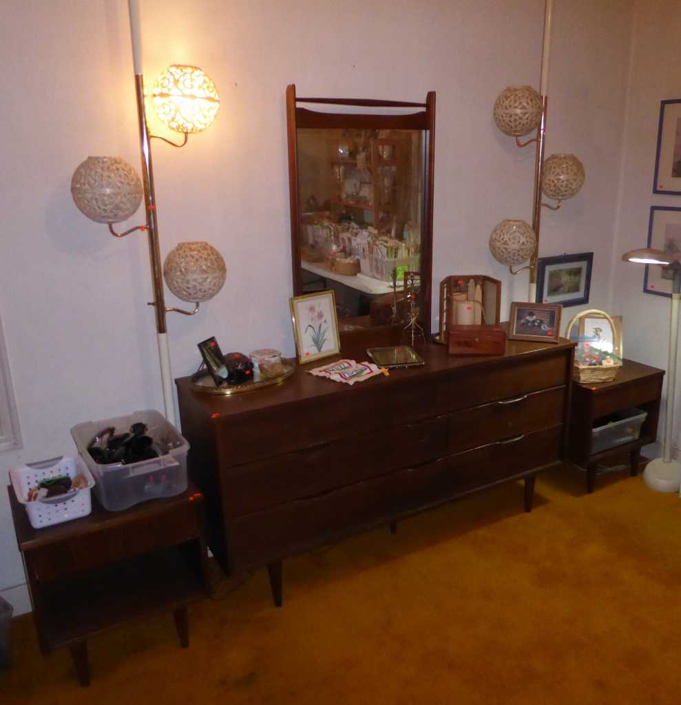 Friday, Saturday & Sunday, 11:00 a.m. to 4:00 p.m., 1624 Washington St., Eugene (off of 16th), mid-century American dresser w/mirror & matching night stands, pair of Hollywood Regency pole lamps, antique dresser w/mirror, Teller mid-century American dining set, antique Art Nouveau desk, 3 Bassett mid-century occasional tables, sleeper sofa, bookcases, framed original art & vintage prints, Haviland Blue Garland dinnerware, Fostoria Meadow Rose crystal, Meakin ironstone Renaissance dinnerware, jewelry, sewing notions, LP's, CD's, DVD's, vintage pulp fiction paperback books, Graflex Speed Graphic camera, washer & dryer, fishing gear, golf equipment, industrial (military) single file drawers, vintage advertising tins, garage shelving, architectural pieces, hand & power tools, Delta Rockwell wood lathe, Mark 1 jointer, Mark 1 table saw, radial arm saw, collectible chrome boat & bicycle parts & more!