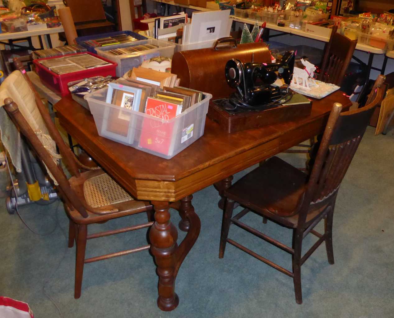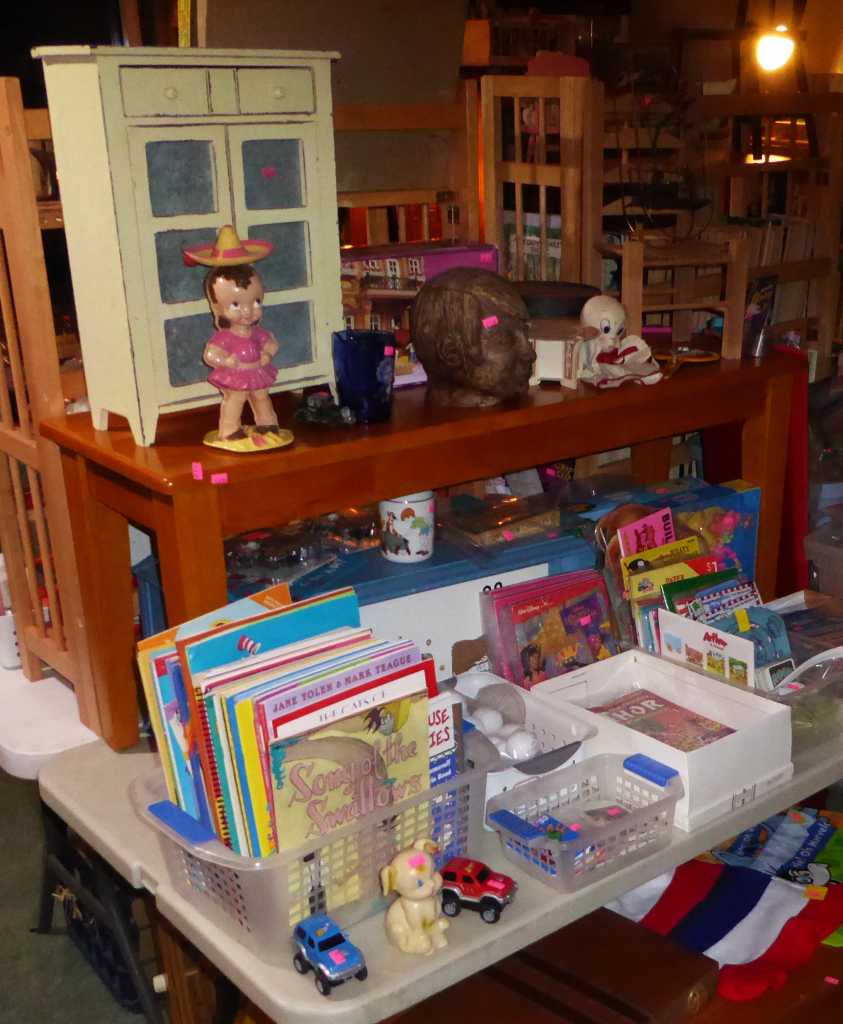 Thursday, Noon to 4:00 p.m., Friday, Saturday & Sunday, 11:00 a.m. to 4:00 p.m., 2575 Windsor Circle E, Eugene (W. 18th to Britney to Windsor Circle), antique furniture, collectibles, advertising bottles, jars & tins, primitives, rooms of Holiday decor, vintage Christmas, antique, vintage & new toys, children's items & books, bookcases, lots of electronics, jewelry, vintage linens & quilts, Heywood Wakefield wicker desk, mid-century china cabinet, C. Jere metal wall sculpture, antique hall trees, Dept. 56 Snow Village, antique Singer sewing machines, antique trunks, Campfire Girl collectibles, oak dining set, Franciscan Desert Rose dinnerware, Queen size Murphy bed, antique rocking chairs, daybed w/trundle, floor lamps, men's clothing, full kitchen, upright freezer, LG front-loading washer & dryer, garage fridge, vintage Schwinn bicycle, pet supplies, hand & garden tools, garage shelving, 7 boxes of architectural stone veneer, patio set, yard decor & more!