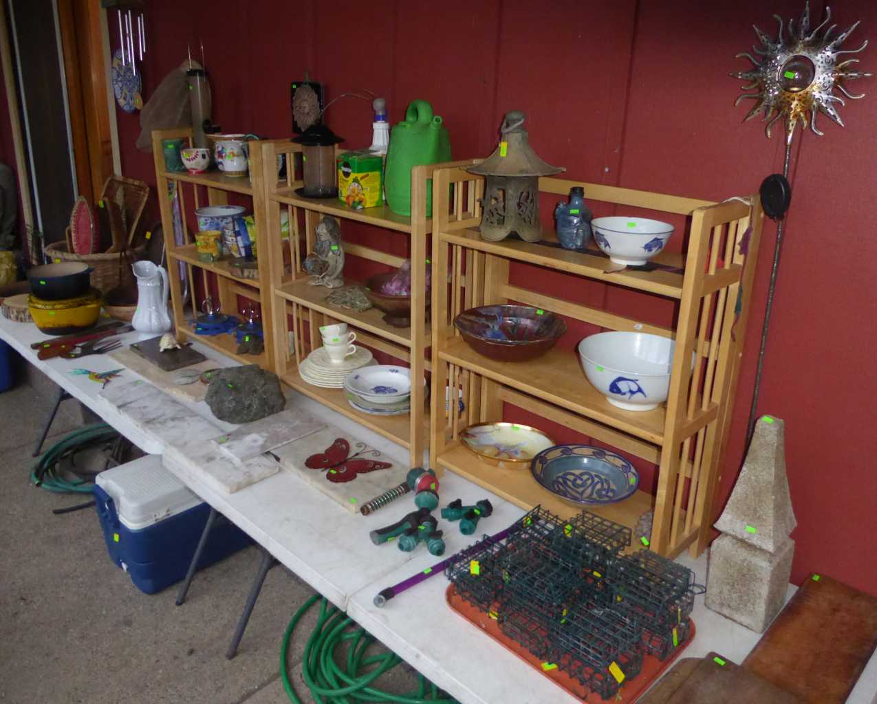 Friday, Saturday & Sunday, 11:00 a.m. to 4:00 p.m., 1728 Karyl Ave. (off of Chambers St.), Eugene, wonderful antique carpets from Pakistan, Morocco, Turkey, East Burma & Afghanistan, Japanese Tansu cabinets with forged iron hardware, traditional Japanese tea tables, Japanese wood block prints & other Japanese decor, early American antiques including primitive cabinet, early 1800's rope bed, 1880's Erskine Danfortg drop-leaf game table, 1905 pegged & hand painted oak Mission bed frame, highly carved library table with brass claw feet, Eastlake marble-top chest, Victorian marble-top parlor table, pedestal claw-foot dining table, set of 6 antique French Empire dining chairs, Florentine style nesting tables, rosewood nesting tables, West Michigan Furniture Co. mid-century chests-of-drawers, antique Troemner appothecary scale, Singer 533 sewing machine, some fabric & notions, books on butterflies & birds, antique ironstone & pewter, Wedgwood & Royal Copenhagen dinnerware, fabulous clothing including Boho-Chic & kimonos, WWII pilot's leather case, refrigerator, washer & dryer, primitve architectural shutters, antique brass stanchions, some camping gear, iron patio set, 6 ft. La Lidia metal yard art, garden tools & more!