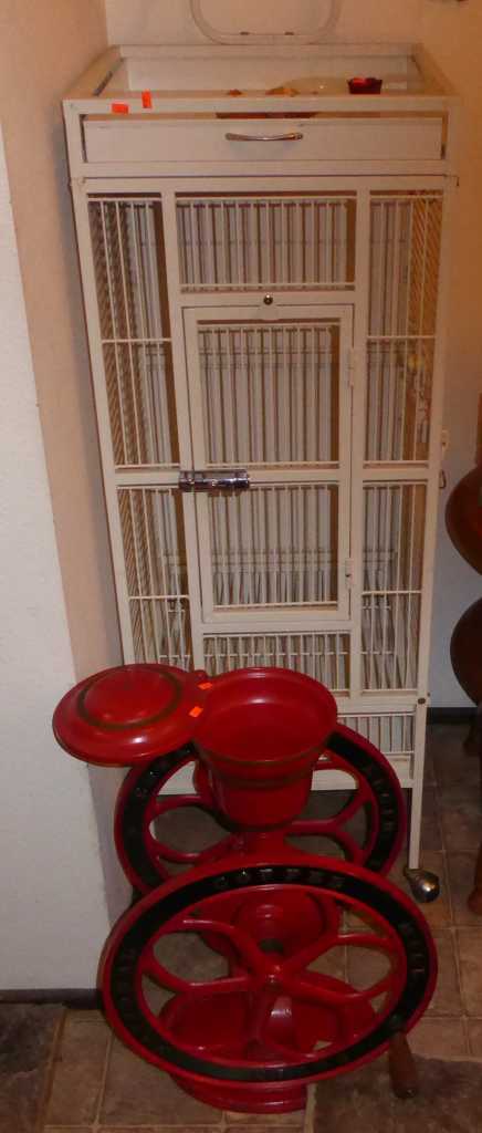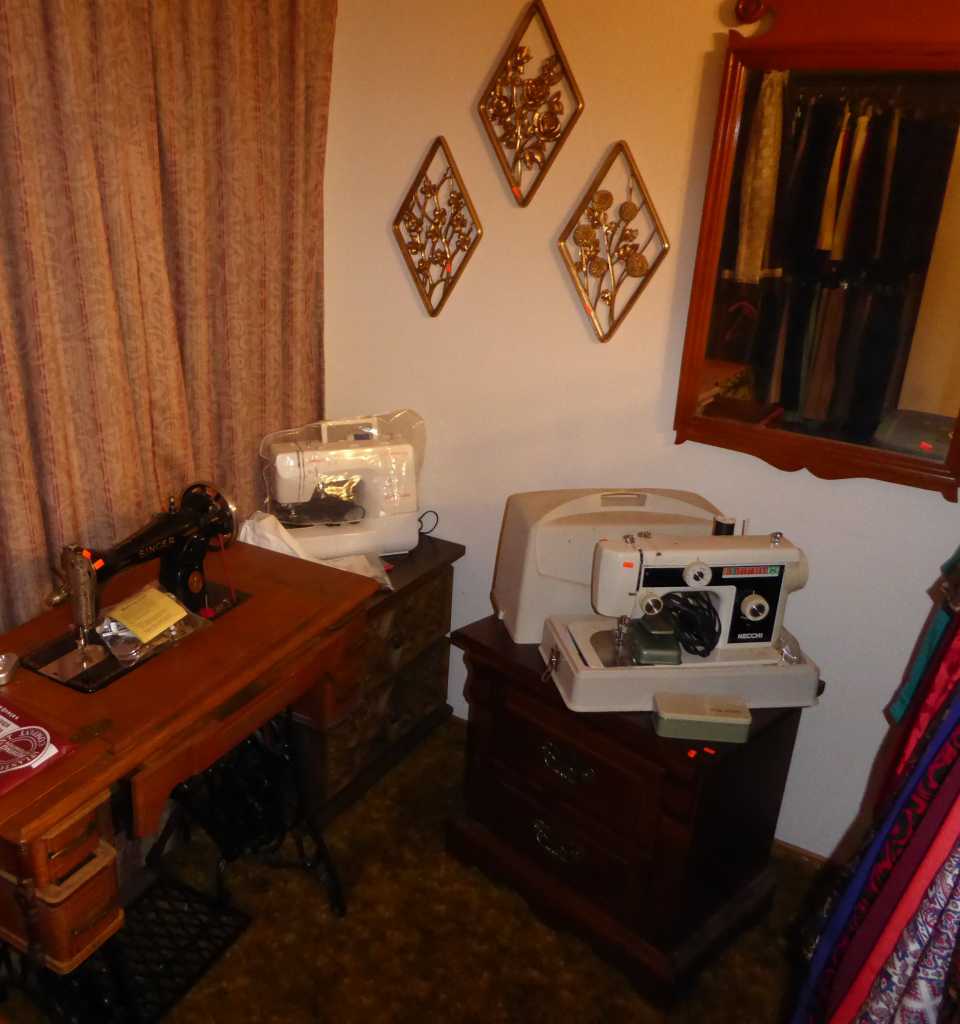 Amazingly full sale, Friday, Saturday & Sunday, 11:00 a.m. to 4:00 p.m., 2995 Camrose St., Eugene (River Rd. to Banton Ave. to Camrose), vintage electronics, Fender Stratocaster guitar, Fender amp, 100's of LP's, DVD's, Elgin National coffee mill, every closet bursting with quality clothing, oodles of costume jewelry, bedroom sets, chest-of-drawers, dressers w/mirrors, Tradewinds cedar lined dresser, King & Queen beds, 4-poster bed frame, range of sewing machines: industrial Singer, Necchi, Singer Scholastic & Singer treadle in cabinet, sewing notions, quilts, small roll-top desk, leather recliner, occasional tables, bookcases, formal & casual dining sets, china cabinet, Franciscan desert rose dinnerware, Frankoma pottery, crystal, carnival glass, desks, file cabinets, glider rocker, cedar chest, full kitchen, Amana washer & dryer, Kirby vacuum cleaners, large birdcage, Snap-on & Craftsman tool chests, Black Hawke drill press, Craftsman commercial metal cutting band saw, riding mowers, walk-behind lawnmowers, ladders, garden tools, massive amount of hand and power tools & more!