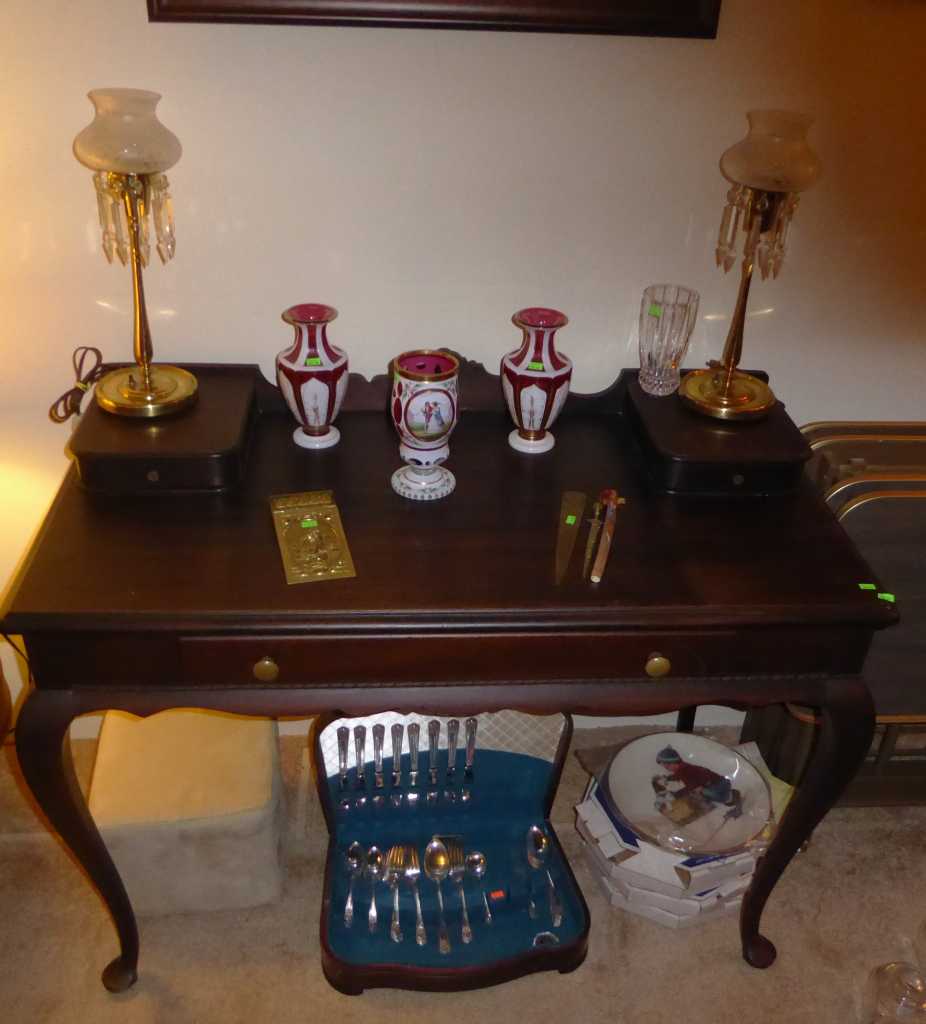 Friday, Saturday & Sunday, 11:00 a.m. to 4:00 p.m., 948 V St., Springfield (Hayden Bridge Rd. to 10th St. to V), wonderful variety of original framed art & signed prints (including Norma Driscoll paintings and original Salvadore Dali etching), fine crystal by Thomas Webb for Tiffany, Royal Doulton figurines, Lenox Eternal dinnerware, American Fostoria glassware, antique books, jewelry & case items, apothecary jars, holiday decor, name brand & vintage clothing, Necchi sewing machine & sewing notions, ephemera, quality household goods & decor, dining room set and matching side board, lovely mahogany writing desk, full & twin size beds, chests-of-drawers, bookcases, bookends, student desk, office supplies, Hermes 3000 manual typewriter (made in Switzerland), matching end tables, coffee table & console tables, sofa & loveseat, full kitchen, Revere Ware, pet supplies, decorative rocks, wide variety of planters & plant stands, ladders, hand & garden tools, garage shelving, Precor treadmill & more!